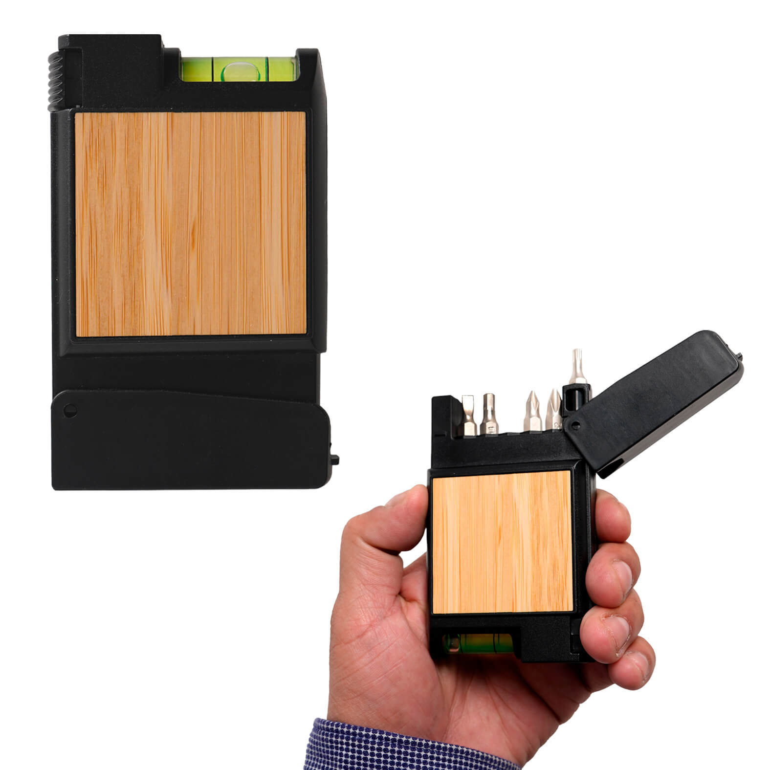 FLEXO Set de herramientas con detalle de bambú. Incluye nivel de burbuja, flex...