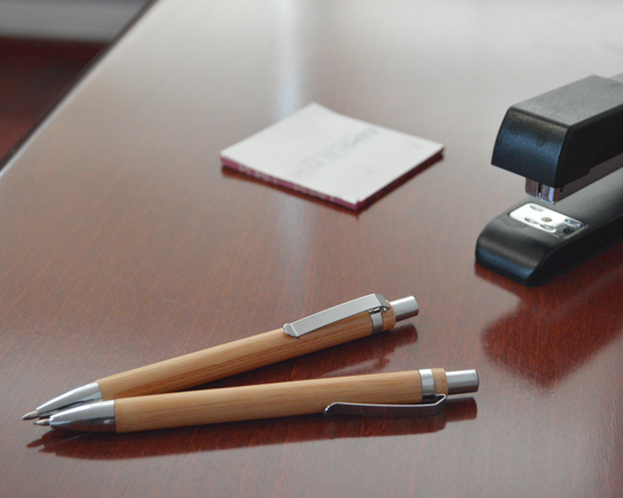 MATERIAL: Bolígrafo: Bambú / Metal // Estuche: cartón. MEDIDAS: Bolígrafo y Lapicero: 14 x 1.0 cm // Estuche: 17 x 4 x 2 cm IMPRESION: GL MED. EMPAQUE: 43.5 x 26 x 36 cm PESO EMPAQUE: 8 kg PIEZAS EMPAQUE: 200