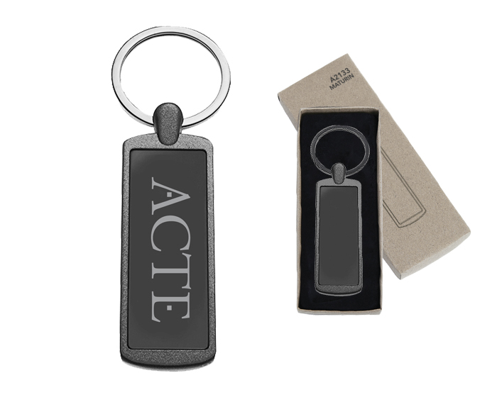 MATURIN - Llavero metálico con arillo reforzado y placa de metal negra para grabado en láser metálica por ambos lados. Presentación: Caja individual de kraft.