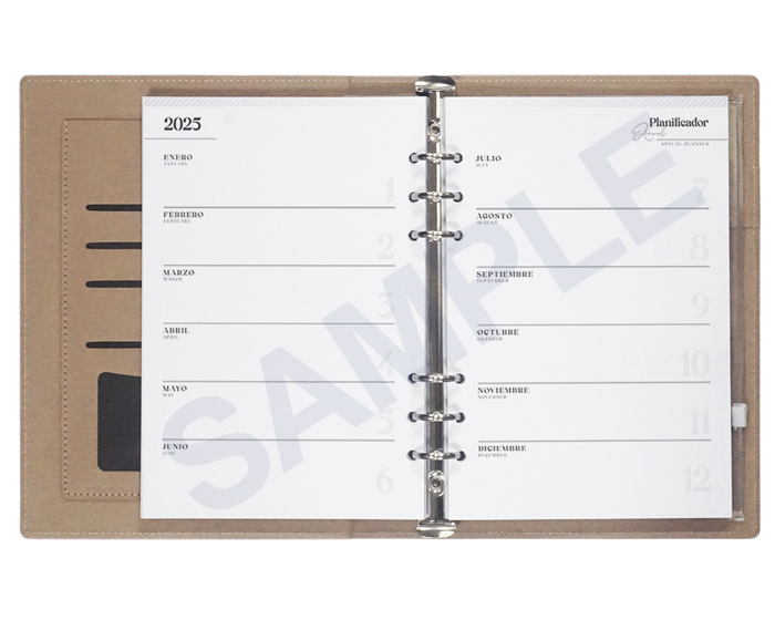 HILTON - Carpeta tipo agendario organizador de pasta rígida de 6 arillos de metal, su cubierta cuenta en la parte interna con 4 compartimentos para credenciales, uno con ventana plástica, sujetador para bolígrafo. Contiene: Hoja de dedicatoria, hoja de datos de contacto, calendarios del 2025 al 2028, planificadores anuales (4), planificadores de gastos (4), planificadores de proyectos (5), hojas rayadas y hojas punteadas para notas. Incluye: regla de 20 cm, bolsa de PVC con cierre a presión y bolígrafo de aluminio acabado brillante con detalles en cromo. Puedes adquirir el repuesto Parker en tinta azul para este bolígrafo. Presentación: Caja en color negro.