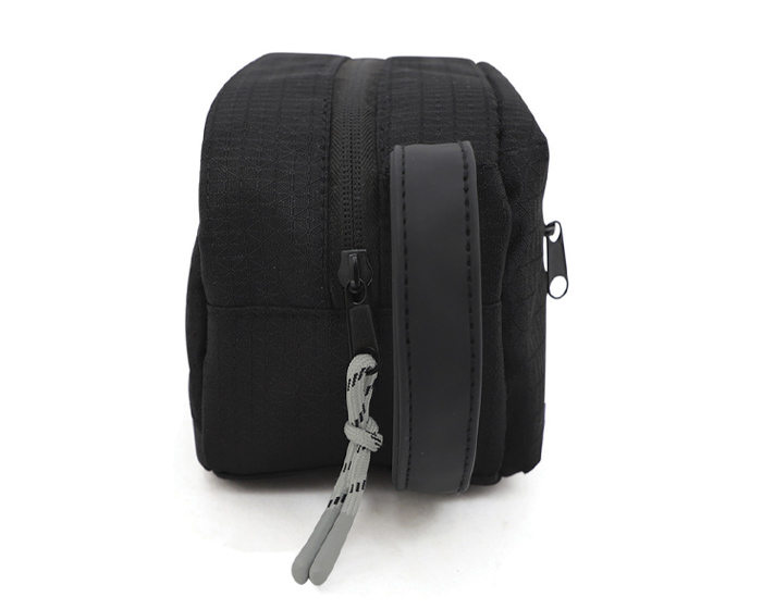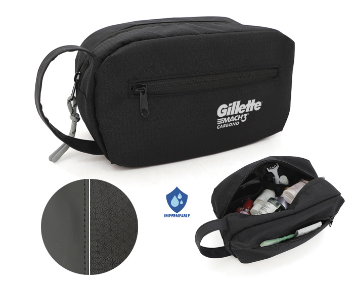 BRUNO - Neceser de viaje de poliéster texturizado con bolsillo exterior frontal; compartimiento principal con forro, 2 bolsillos internos de red y cierre central con tirador. Cuenta con asa exterior de curpiel para transportar.