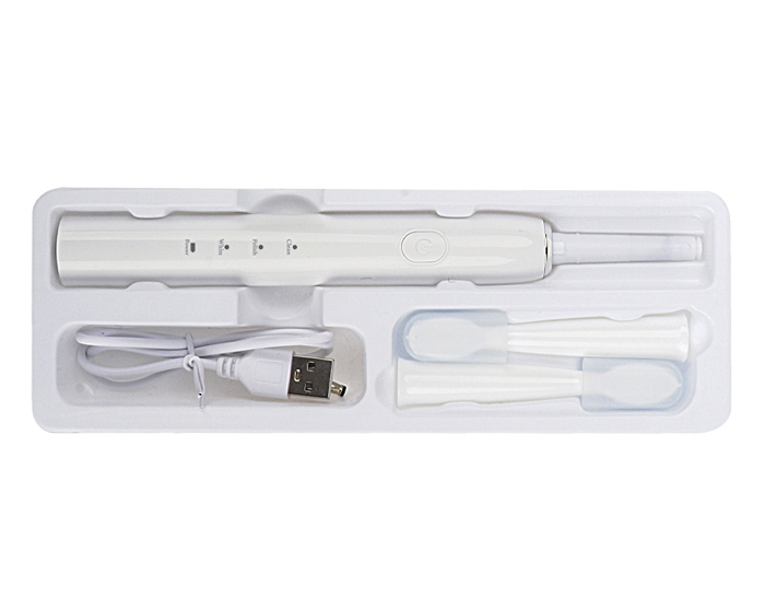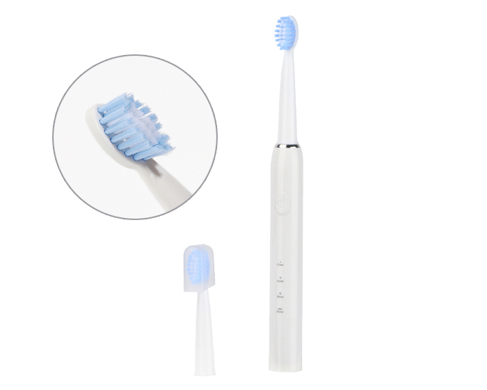 SONRISA - Cepillo de dientes eléctrico con batería de 500 mAh resistente salpicaduras. Cuenta con entrada de carga redonda DC (Incluye cable de carga). Cuenta con botón de encendido y apagado, 3 modalidades de limpieza, indicador de carga y 2 cabezales de repuesto con tapa protectora. Tiempo de carga: 3 hrs. Duración de la batería de 30 días aprox. (uso de 2 min. por cada aseo dental). Presentación: caja de regalo a color.