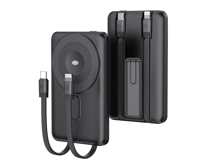 MAGNETIC - Batería inalámbrica portátil wireless de carga rápida, con función de carga magnética para dispositivos móviles (15W) y relojes inteligentes(2.5W). Capacidad de 5,000 mAh, 5 indicadores de luz de carga de la batería, entrada de carga tipo C (Incluye cable de carga), botón de encendido/apagado y 2 cables de salida para carga de dispositivos móviles: 1 entrada tipo C y uno entrada para iphone. Incluye soporte metálico para dispositivos móviles. Compatible con dispositivos Android e iOS. Presentación: Caja de regalo a color. (Para carga inalámbrica verifique la compatibilidad con sus dispositivos móviles).