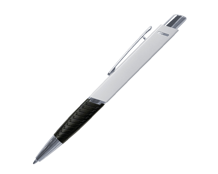 QUADRATI - Bolígrafo de aluminio con forma cuadrada, con excelente área para personalizar, ideal para grabar códigos QR. Cuenta con punta, clip, aro central y botón en cromo, grip negro con textura. Tinta alemana negra. Mecanismo de click.