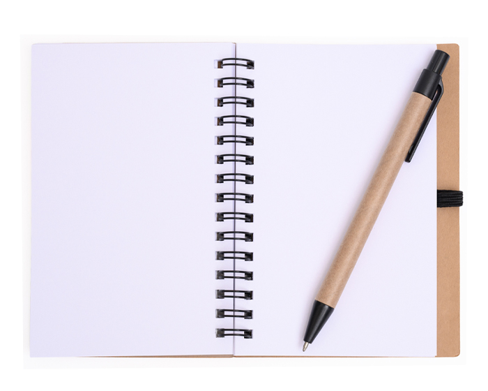 TAMAYA - Libreta ecológica tamaño A6 con 65 hojas blancas (130 páginas), arillo metálico, cuenta con: regla plástica de 13 cm, 5 blocks de notas adhesivas en colores diferentes y bolígrafo de cartón de tinta negra con detalles en negro y resorte para sujetar el bolígrafo.