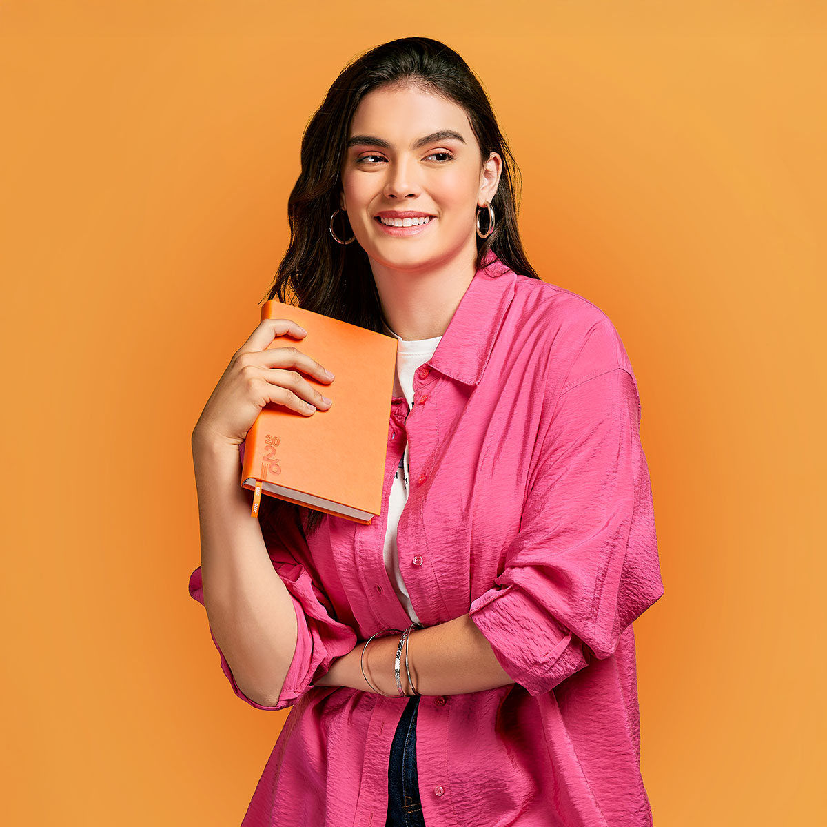 AGENDA DIARIA TERRA 2026 - Agenda diaria con 186 hojas. Contiene datos personales, calendarios 2025-2026-2027, planeador 2026, seguimiento de nuevos hábitos, organizador de tareas, planeador de proyectos y días festivos. Incluye caja individual del mismo color a la agenda.