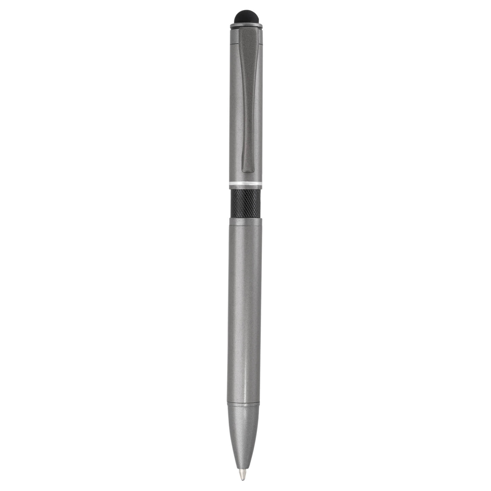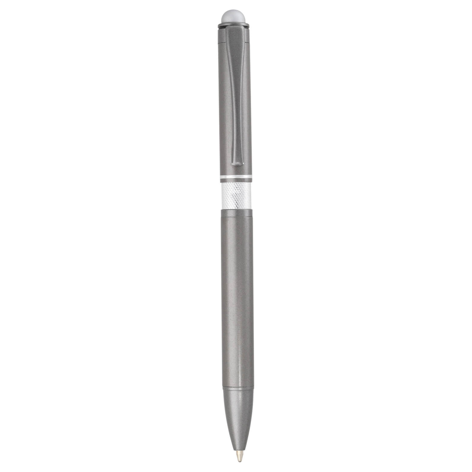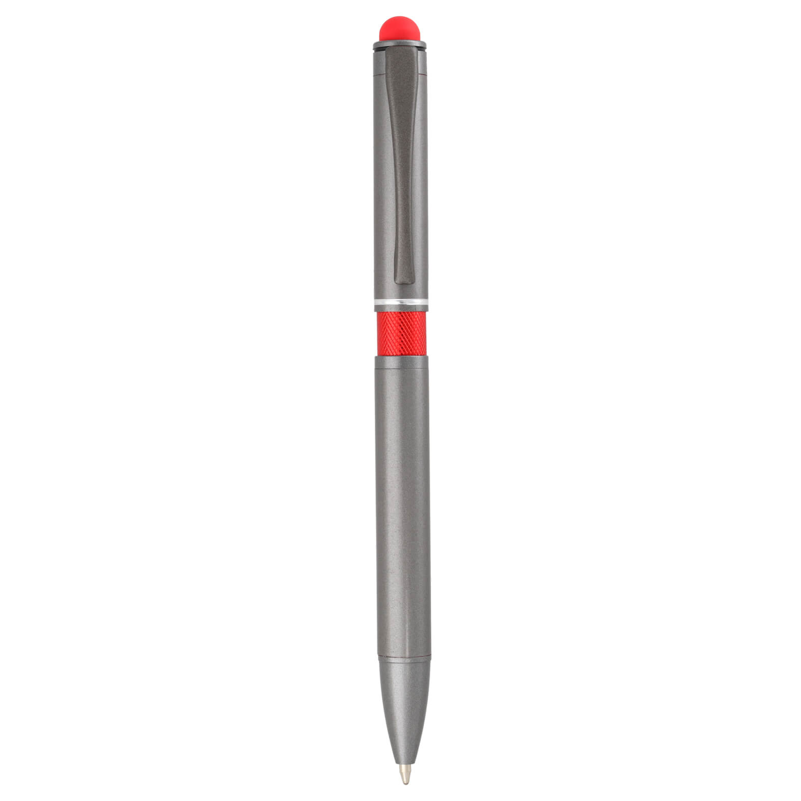 ZUG Bolígrafo metálico con detalle en el centro, clip, goma touch screen y mecanismo de click.