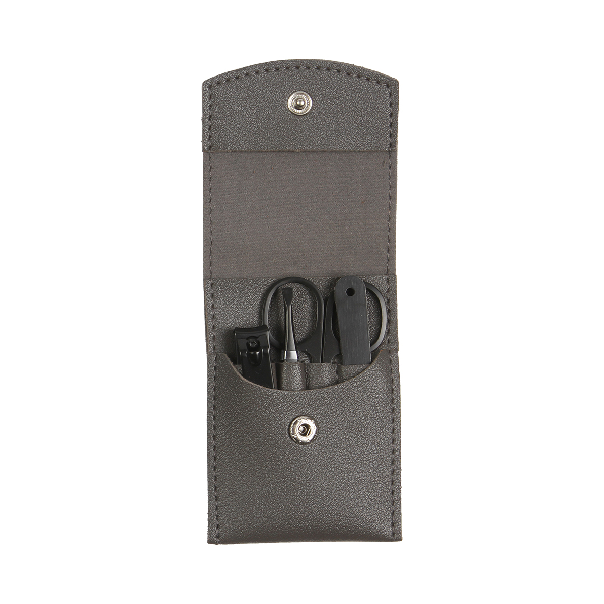 Set de belleza Alepo - Set de manicure con 4 piezas de acero y estuche de curpiel que le agrega un toque de estilo. Incluye: corta uñas, pinzas, tijeras y lima. Gracias a su tamaño compacto es fácil y cómodo de transportar.