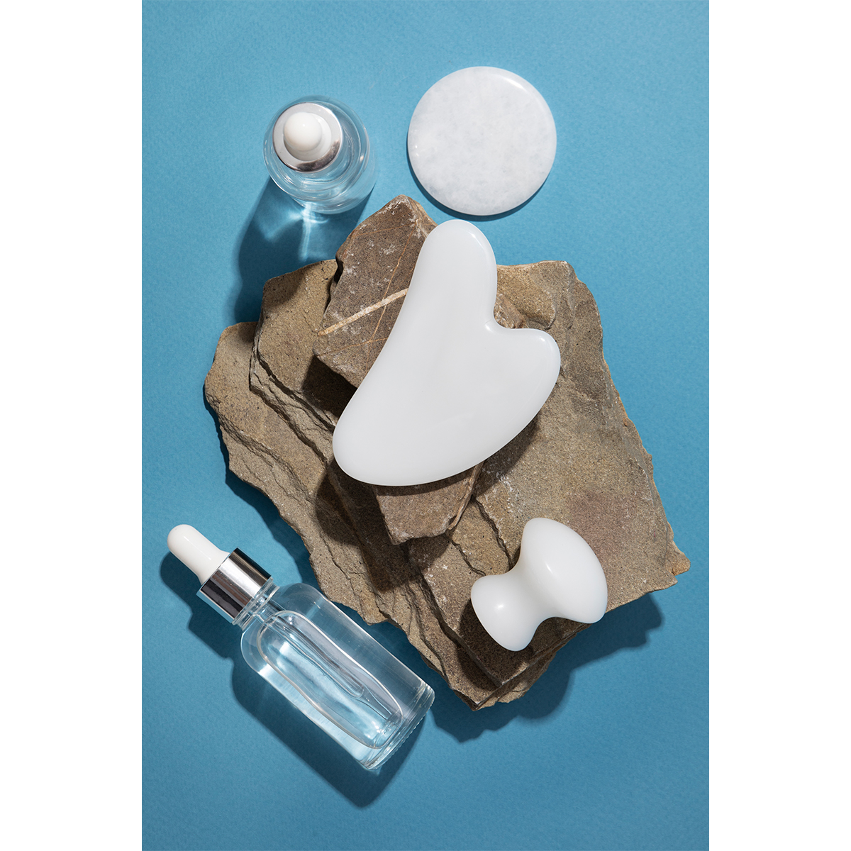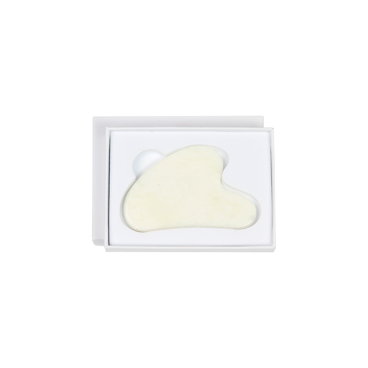 Masajeador Baden. - Masajeador para el rostro tipo gua sha fabricado en piedra real pulida color blanco, incluye caja de cartón para regalo color blanca suajado a la forma del producto.  Este masajeador  te ofrece una oportunidad única de mimarte y cuidar de tu piel de una manera lujosa y relajante. Es perfecto para aquellos que buscan una rutina de cuidado facial efectiva, holística y elegante.