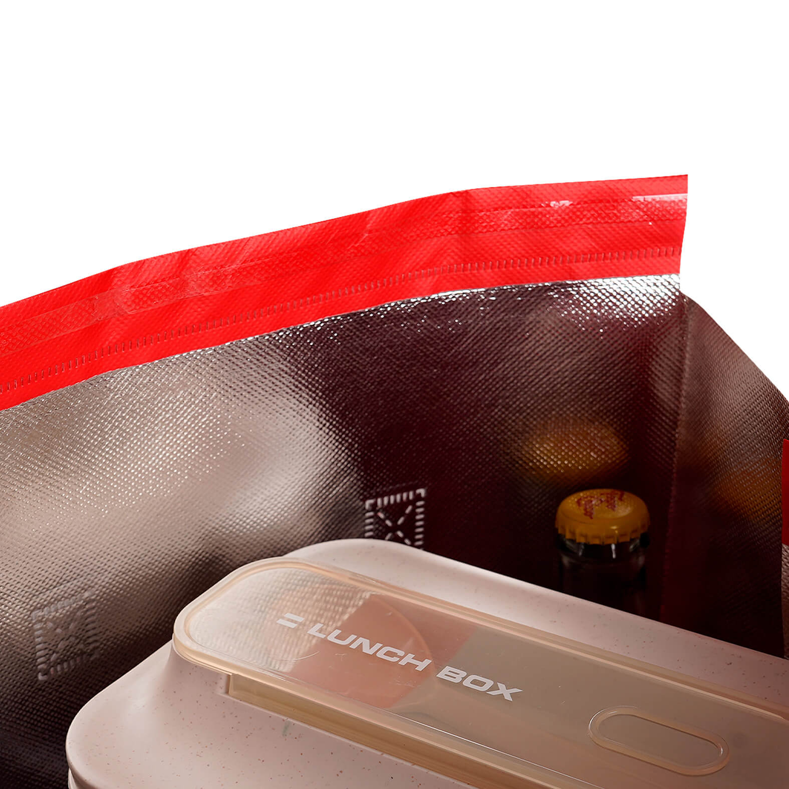 ZAZU Bolsa de non woven con interior metalizado, laminado y termosellado con asas. Cuenta con una pestaña en la parte superior con pegamento reutilizable para cerrar la bolsa.