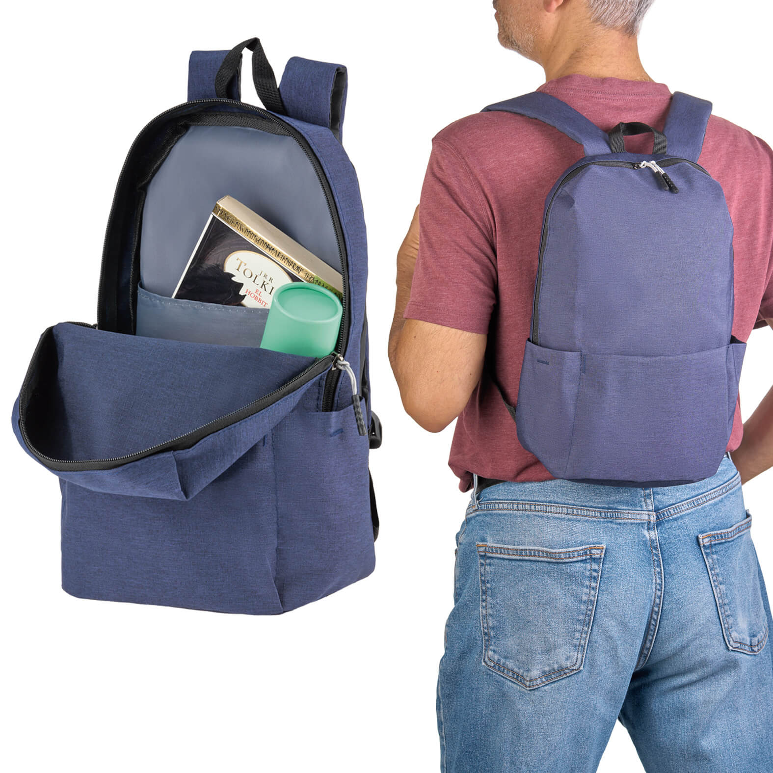 DINKEL Mochila práctica con compartimento principal, compartimento frontal con cierre y dos bolsas laterales.