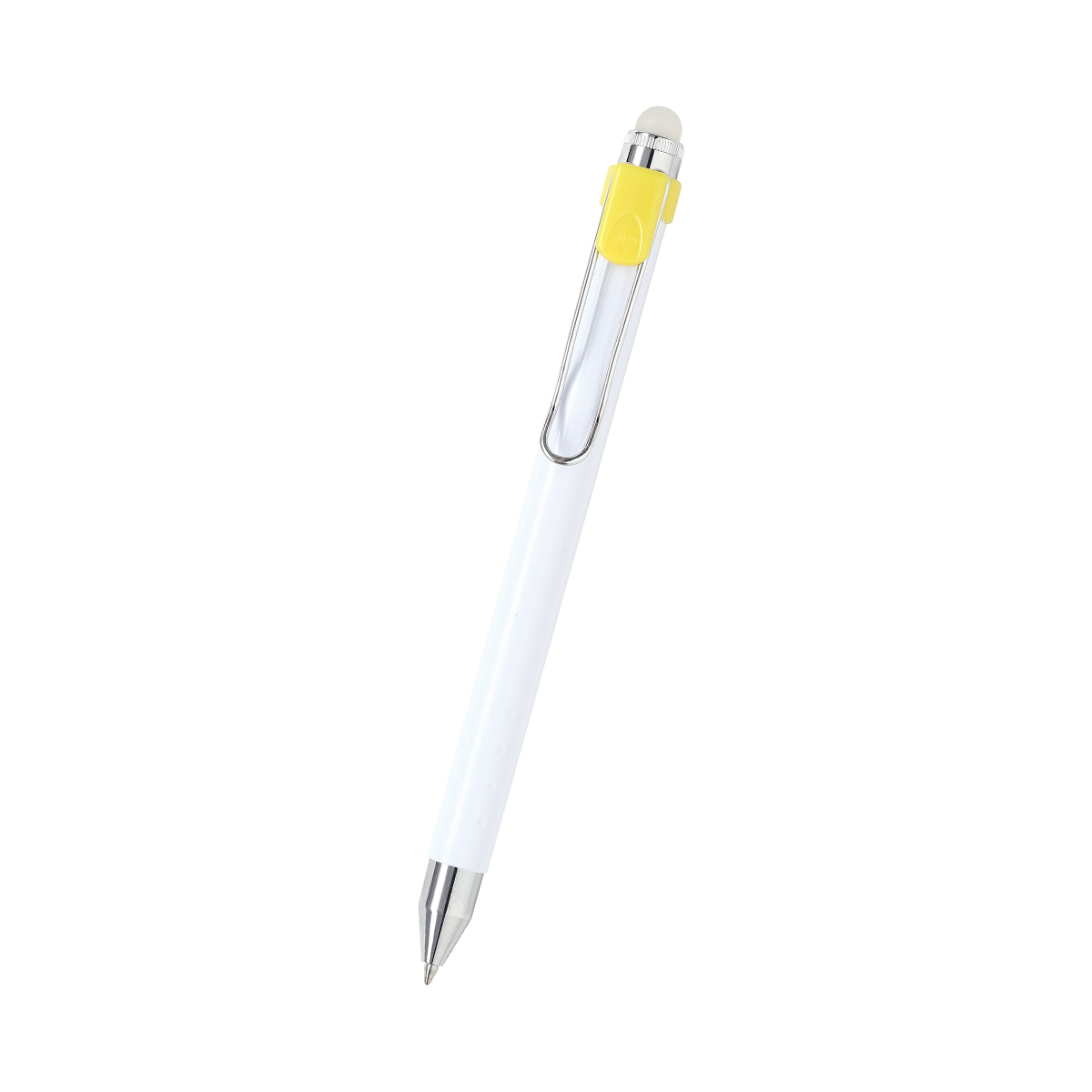 Bolígrafo Enna. - Bolígrafo retráctil fabricado en ABS con detalles de color, detalles cromados y goma. Tinta de escritura negra.