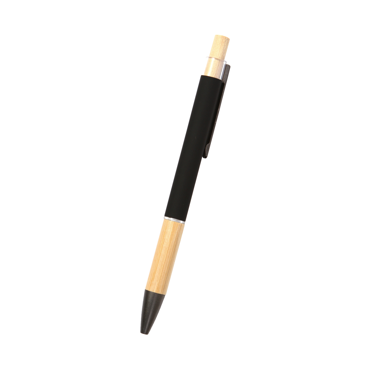 Bolígrafo Scai. - Bolígrafo de tinta azul, con mecanismo de botón, fabricado en aluminio, con clip metálico y detalles de bambú.