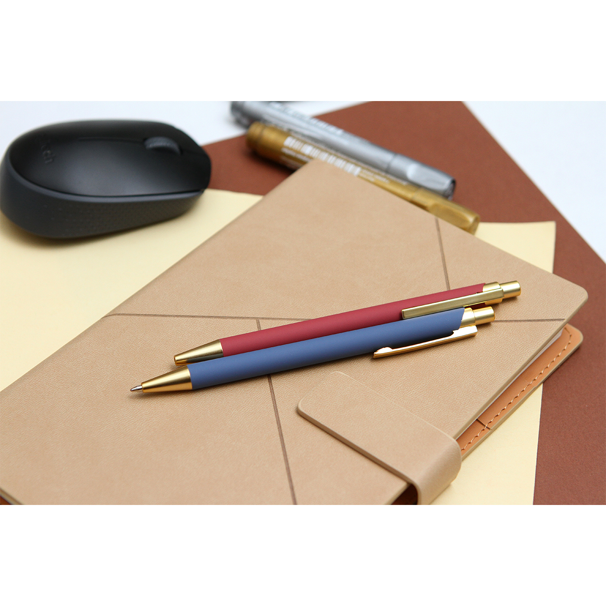 Bolígrafo Martella. - Bolígrafo con acción de empuje, barril fabricado de aluminio rociado metálico, detalles dorados. Tinta de escritura negra.