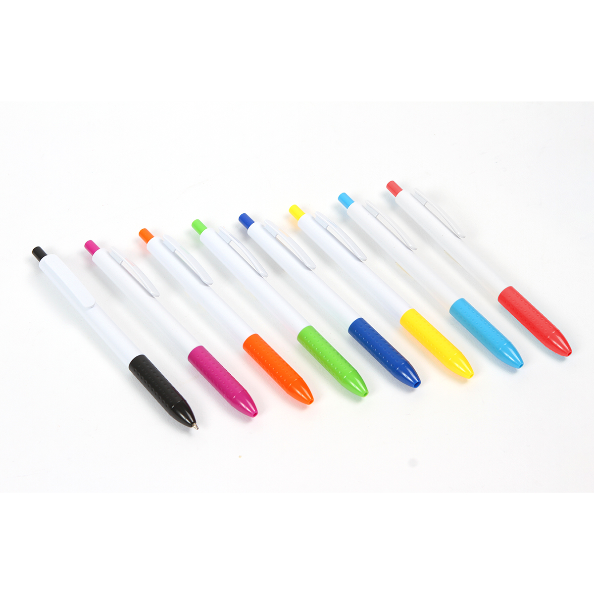 Bolígrafo Ceton. - Bolígrafo con barril fabricado en plástico ABS color blanco, con punta y botón en diferentes colores a elegir, mecanismo de botón. Tinta de escritura color negro.