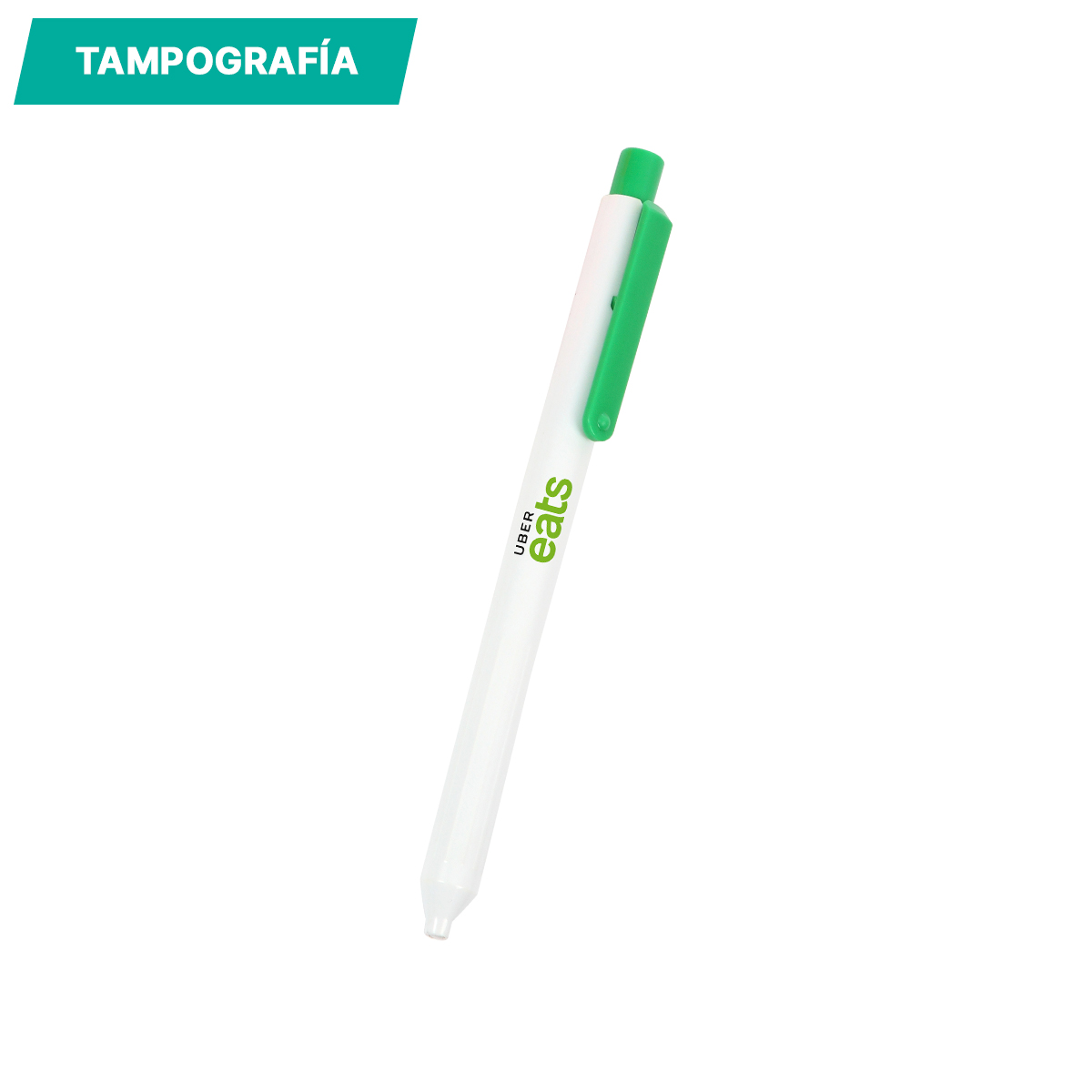 Bolígrafo Vaiges. - Bolígrafo con barril fabricado en plástico ABS color blanco y clip en diferentes colores a elegir, mecanismo de botón. Tinta de escritura negra.