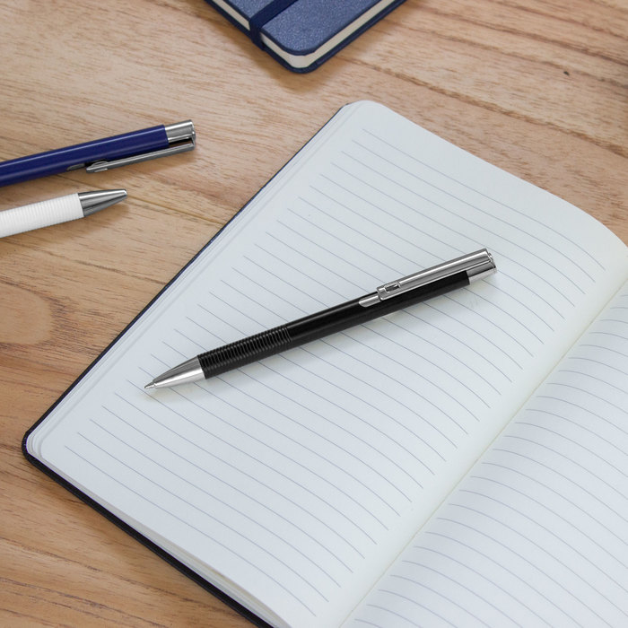MATERIAL: Aluminio, plástico ABS y acero MEDIDAS: 1 x 13,7 cm IMPRESION: Serigrafía, tampografía, grabado láser MED. EMPAQUE: 33 x 27 x 18 cm PESO EMPAQUE: 8 kg PIEZAS EMPAQUE: 500 pzs