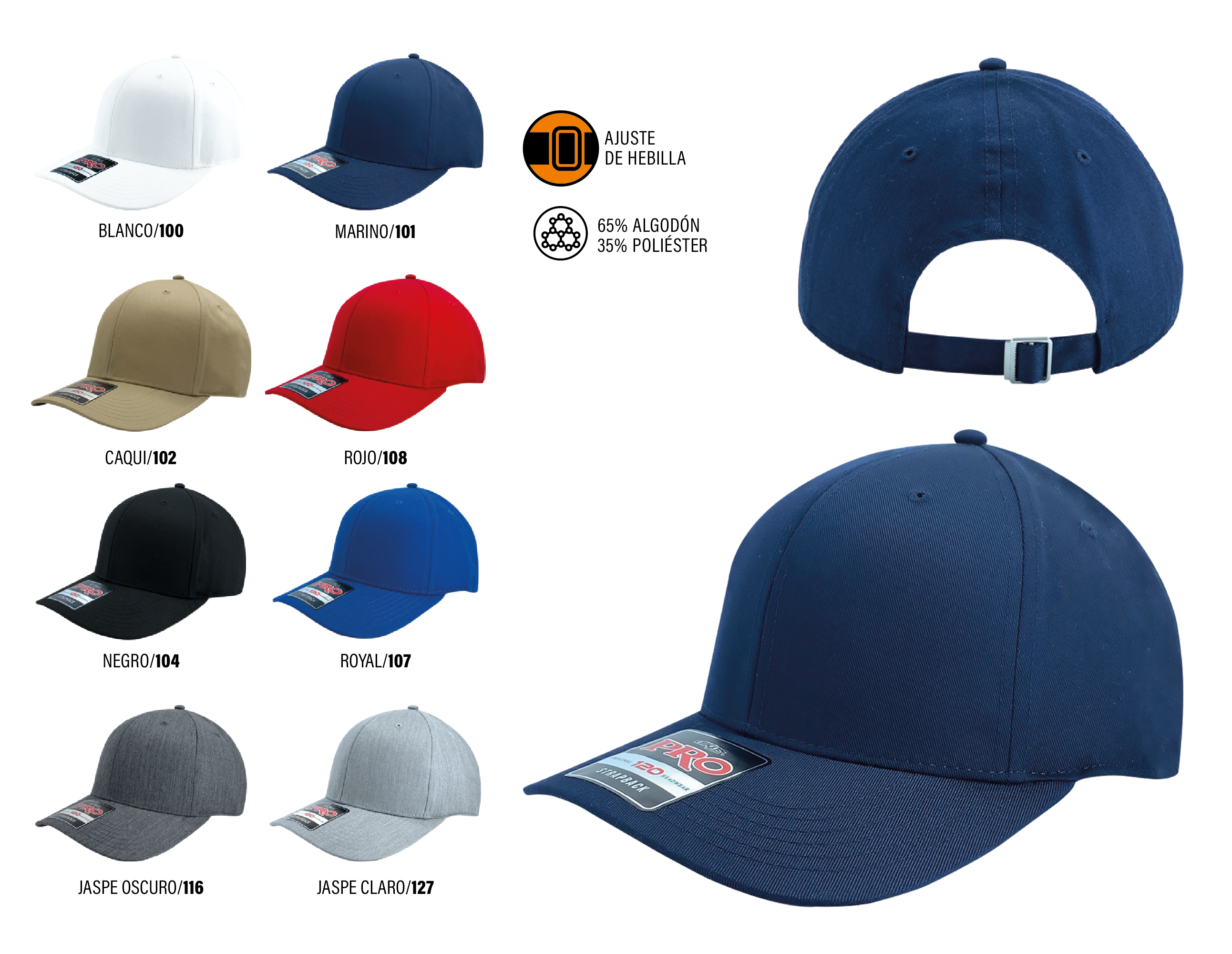 GORRA PRO 65% ALGODON 35% POLIESTER AJUSTE DE HEBILLA METALICA NEGRO