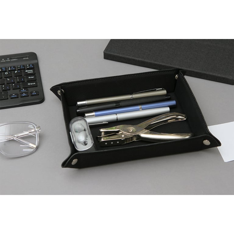 Charola organizadora Bedford. - Charola organizadora fabricada en curpiel. Multifuncional y perfecta para mantener todo en orden en diferentes espacios. Diseño innovador, materiales duraderos y fácil de limpiar.