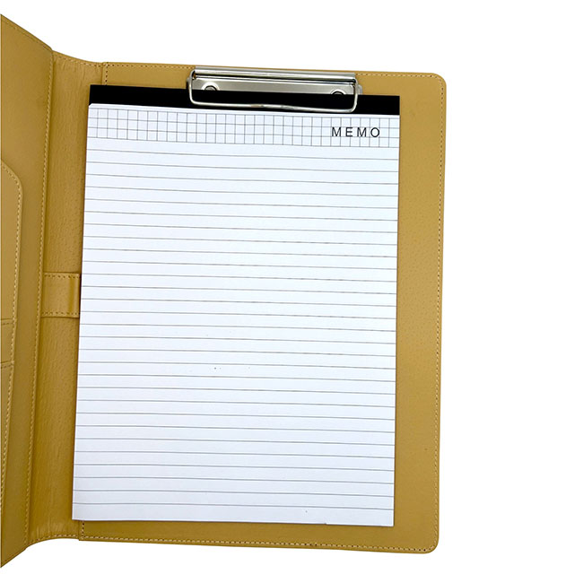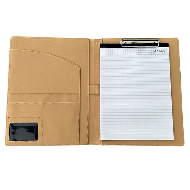 Porta Documentos Tulsa Porta Documentos Tulsa l Incluye block de hojas rayadas. l Interior con portabolígrafos y compartimentos organizadores l Apertura adicional en cubierta para documentos. l Colores: Negro. Material: Curpiel Medida: 32 x 24 cm. Impresión: Tampografía y Grabado Láser Área de Impresión: 10 x 4 cm.