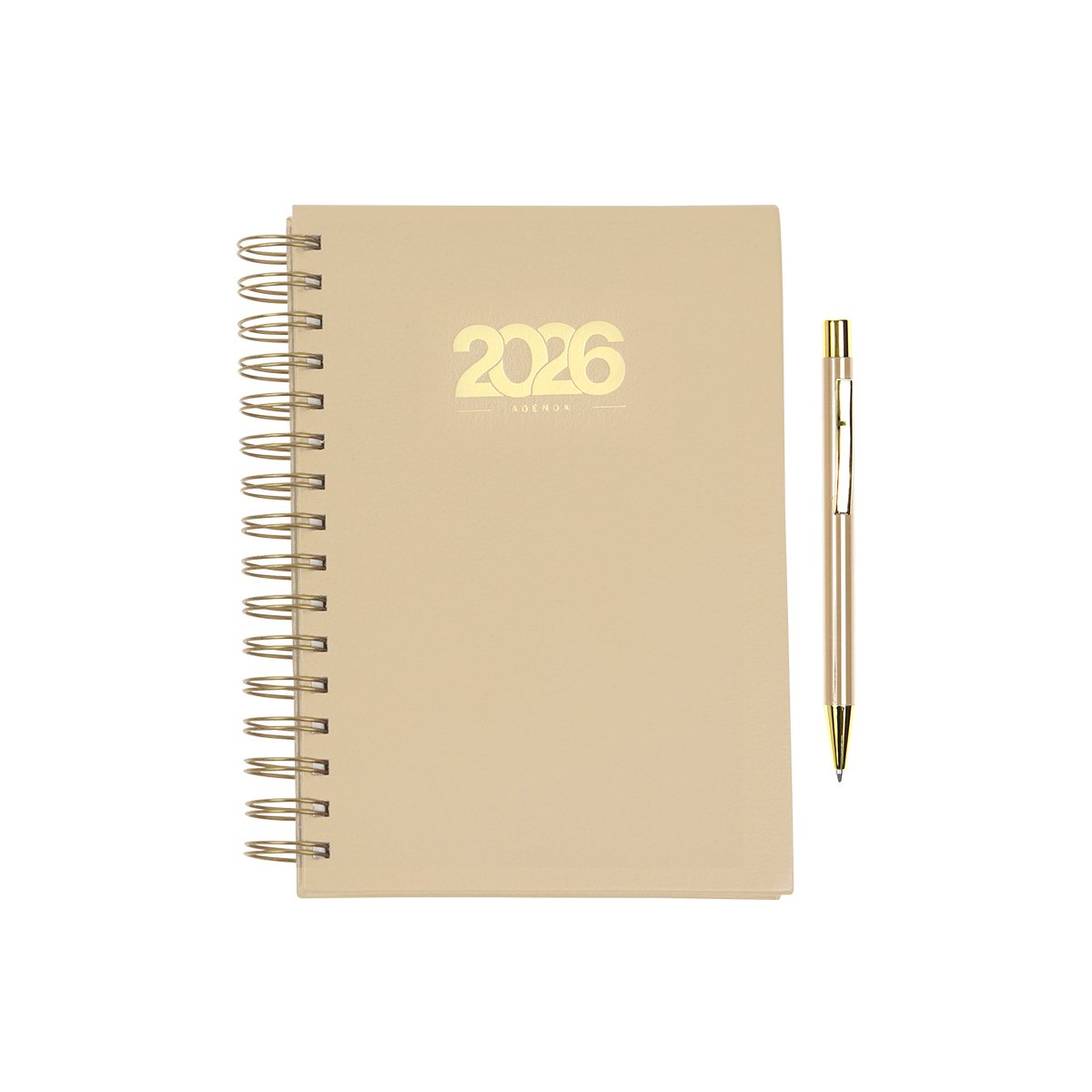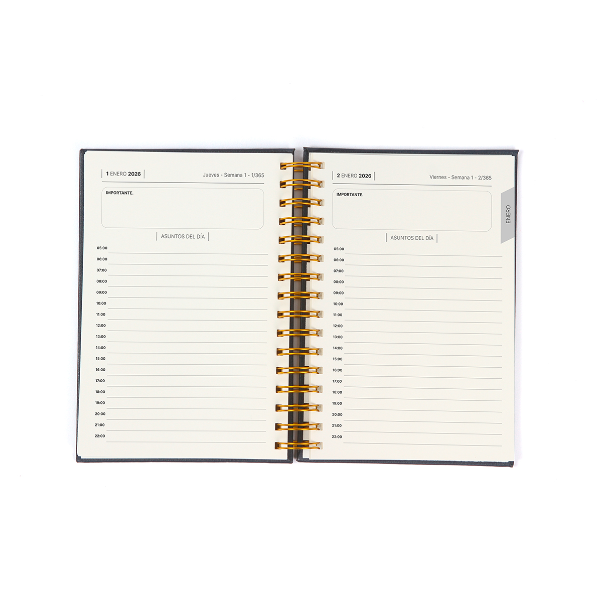 Agenda Diaria Bernetti. - Set de Agenda diaria 2026 con espiral, detalles en dor...