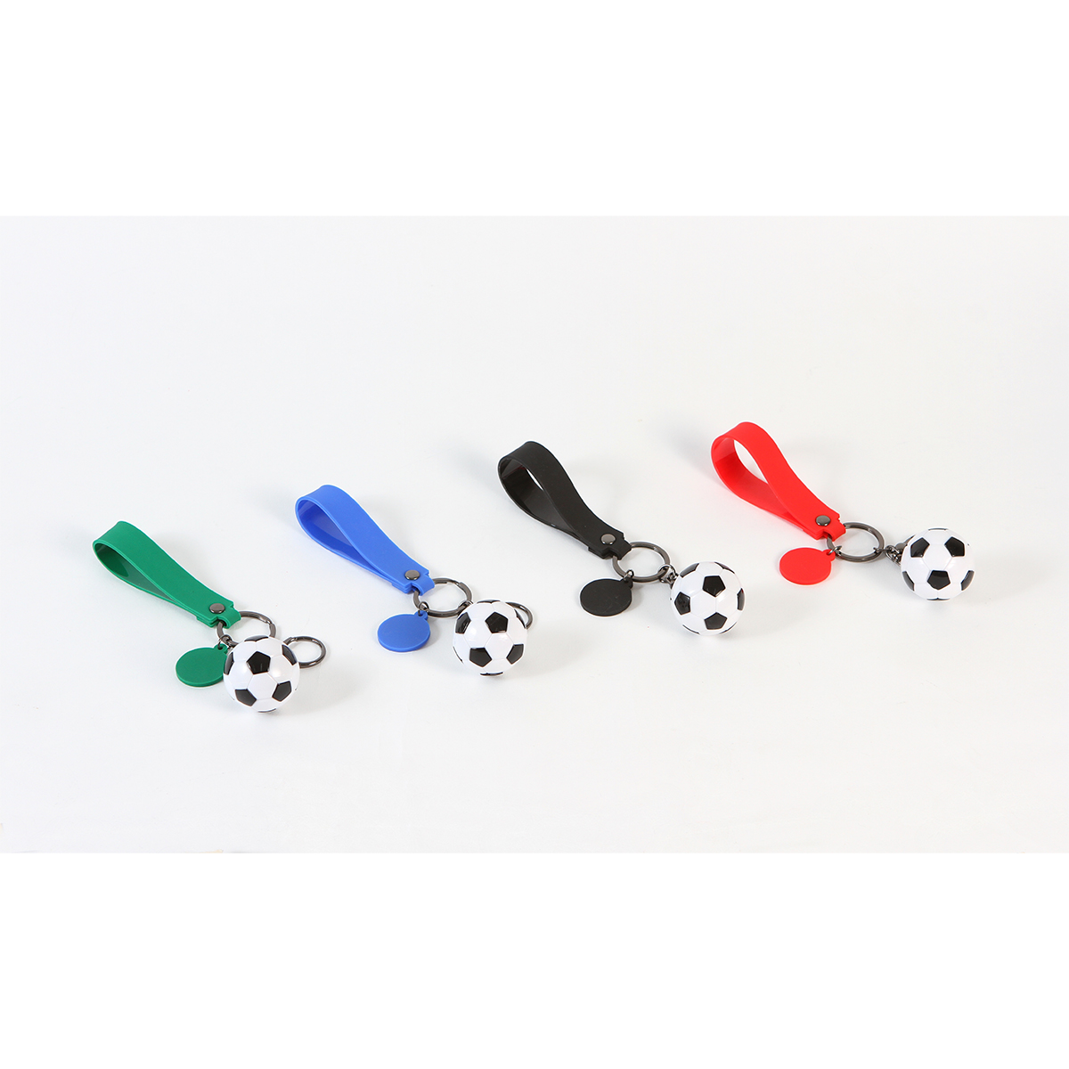 Llavero Hythe. - Llavero fabricado en plástico PVC con diseño de balón de fútbol. resistente, ligero y perfecto para fans de este deporte. Ideal para mochilas, llaves o como detalle promocional.