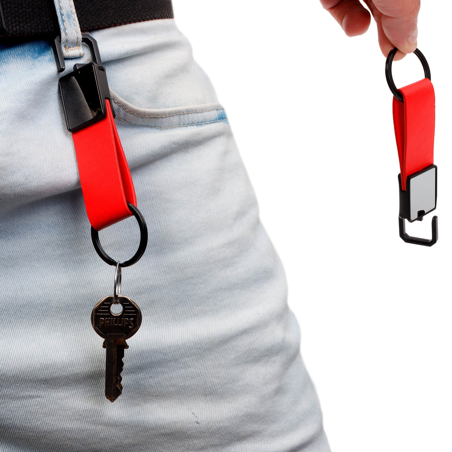 THALASSIA Llavero metálico con gancho de sujeción, correa de curpiel y rectángulo con acabado espejo.