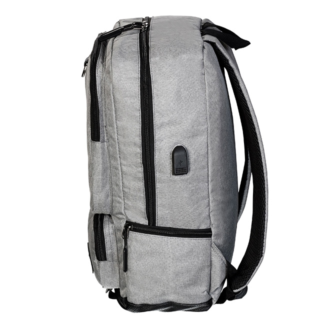 Backpack Murray Backpack Murray Salida laterial para USB.Dos amplios bolsos con cierre en zipper.Detalle superior con argolla.Etiqueta inferior para personalizar.Base en terminado curpiel.Bolsillos laterales con cierre.Correas ajsutables y acojinadas.Compartimiento interior para laptop.