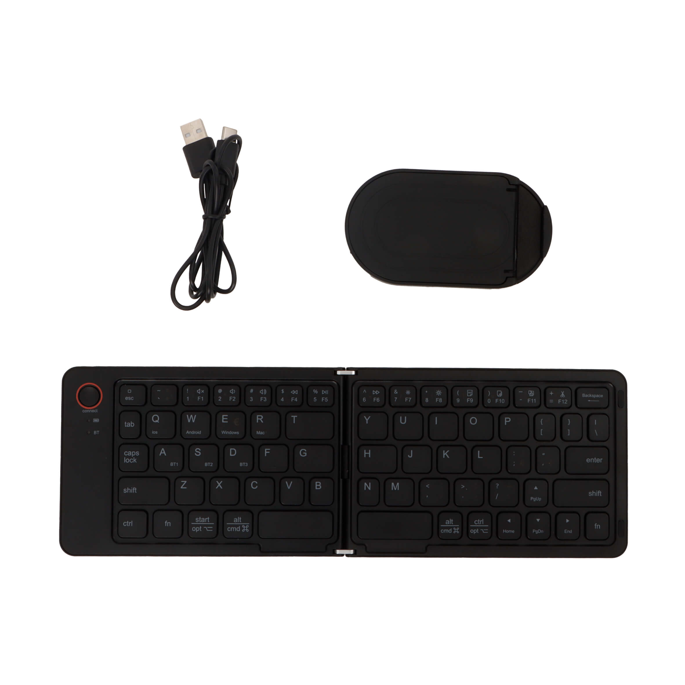 IDEZA Teclado inalámbrico plegable con botón de conexión. Incluye soporte y cable de carga.