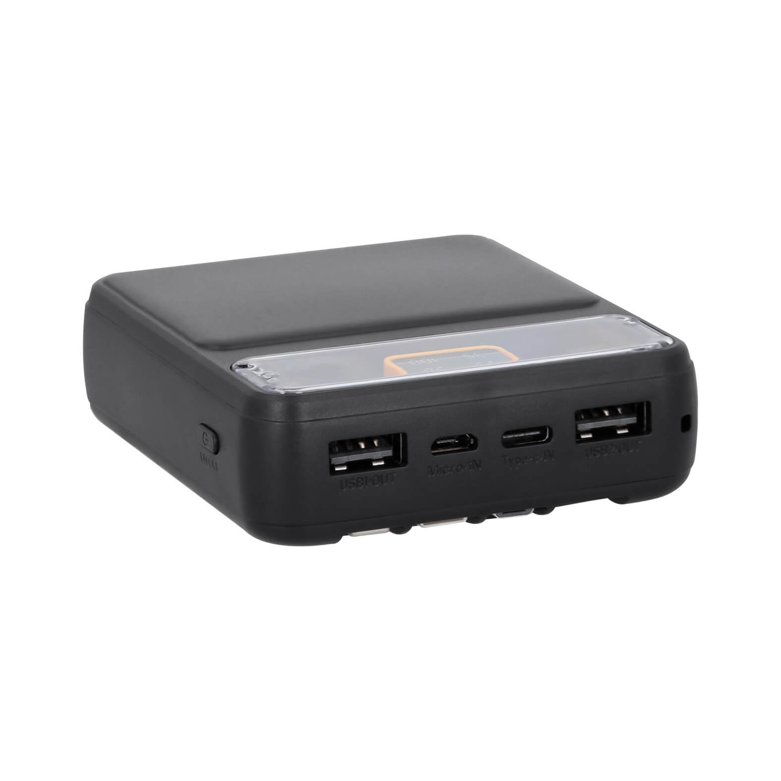 LICHT Power Bank de 8,000 mAh con carga rápida, cables para dispositivos de entrada USB, micro USB, tipo C y lightning, además de 2 puertos USB, 1 Micro y 1 tipo C. Incluye indicador de carga y botón de encendido o apagado.