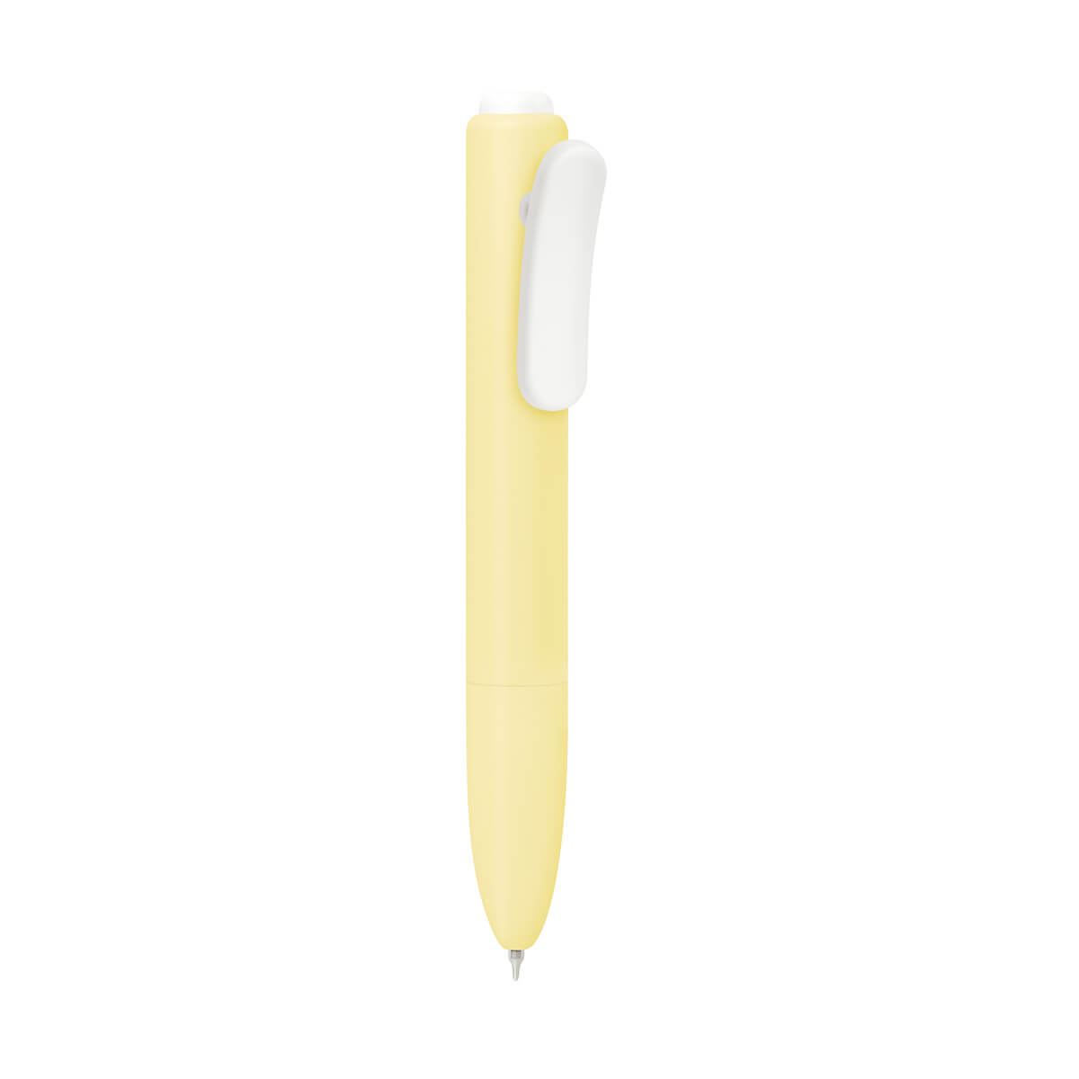 BOLÍGRAFO YAZMA - Bolígrafo de plástico con mecanismo pulsador. Su diseño destaca formas suaves y redondeadas. Agrega un clip con función de pinza que aporta un toque moderno y minimalista.