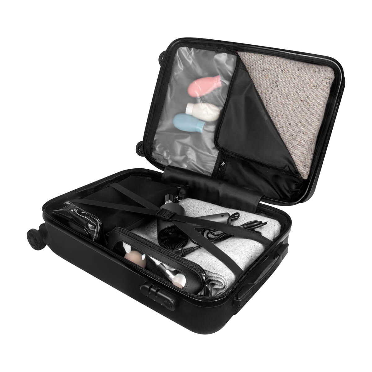MALETA TROLLEY RUDDER - Maleta carry-on que combina estilo, funcionalidad y seguridad, ideal para viajes cortos, con un cómodo tamaño carry-on aprobado para cabina. Su diseño otorga un amplio espacio interior y organización eficiente, cuenta con compartimento interno para accesorios y artículos personales y un práctico bolsillo organizador resistente al agua. Cuenta también con un candado de combinación integrado para mayor seguridad. Equipada con cuatro ruedas de giro suave y asa retráctil con dos niveles ajustables que garantizan un desplazamiento cómodo y práctico.