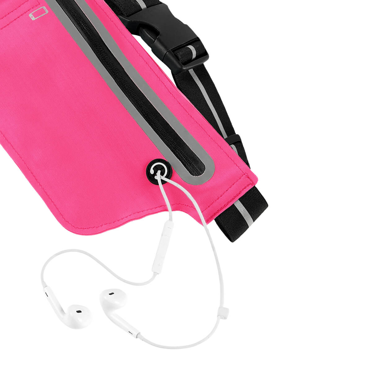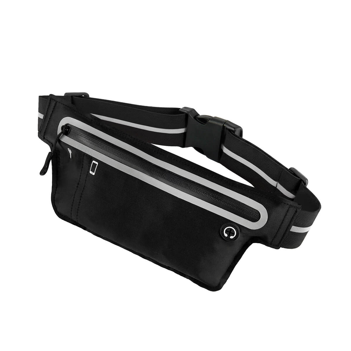 CANGURERA FIXA - Cangurera deportiva ligera. Incluye interior plastificado. Ofrece resistencia al agua y comodidad en todo momento. Su compartimento con cierre y puller con correa permite guardar lo esencial, mientras que la salida para audífonos con cable te acompaña con música en cada paso. La banda elástica con broche de plástico se adapta fácilmente al cuerpo, y sus detalles reflejantes en cinturón y cuerpo brindan visibilidad extra en condiciones de poca luz.