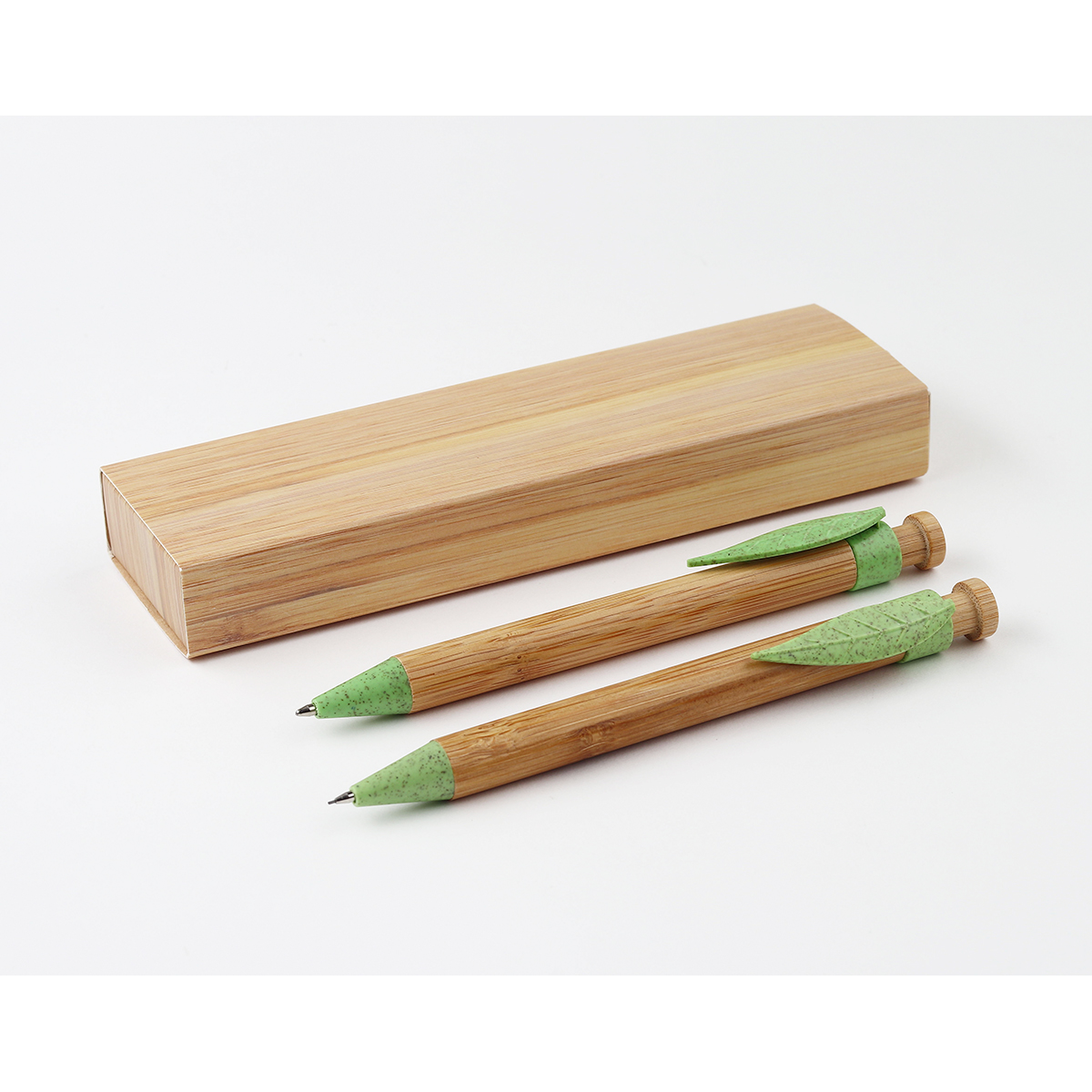 Set de bolígrafos Plasencia. - Set de bolígrafo y lapicero fabricado en fibra de bambú y clip en fibra de trigo, tinta de escritura negra.