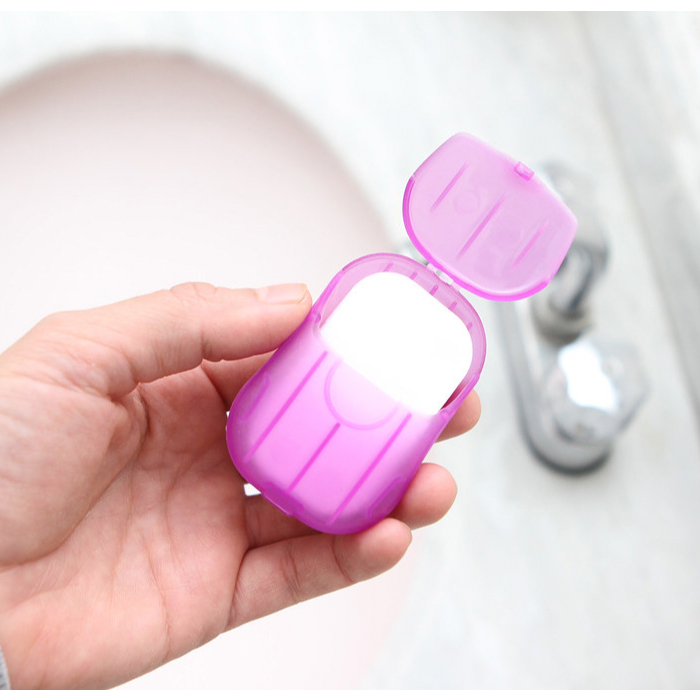 Contenedor de jabón. - Contenedor portátil fabricado en plástico PP (Polipropileno) translucido, con 20 láminas de jabón de desinfección que es suave para la piel y no causa resequedad. Ideal para llevarlas contigo a cualquier lugar.