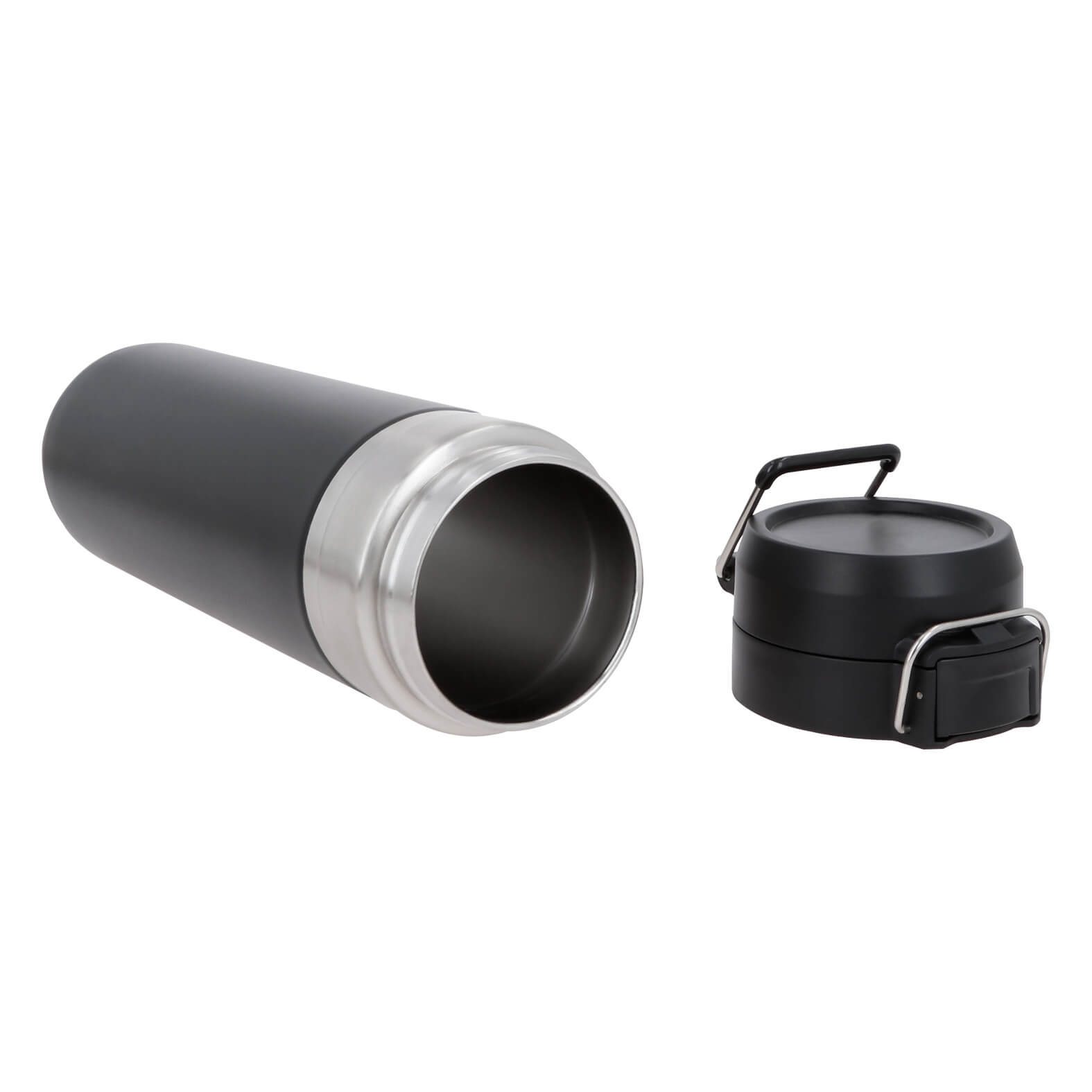 GRYLLS Termo con acabado rugoso, doble pared de acero inoxidable, insulado al vacío, tapa enroscable con candado de seguridad y asa metálica.