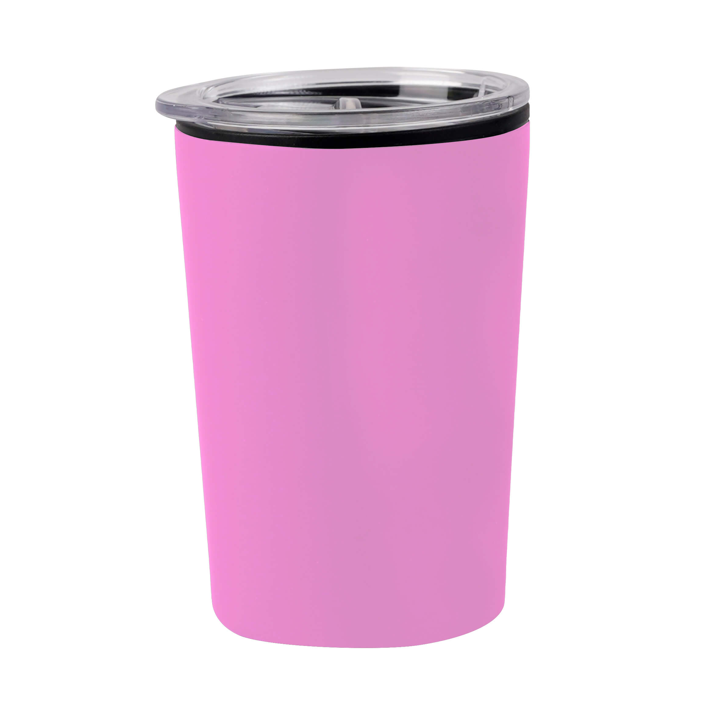 TOSHI Termo de doble pared con exterior de acero inoxidable e interior de plástico, con tapa de cierre a presión y seguro deslizable.
