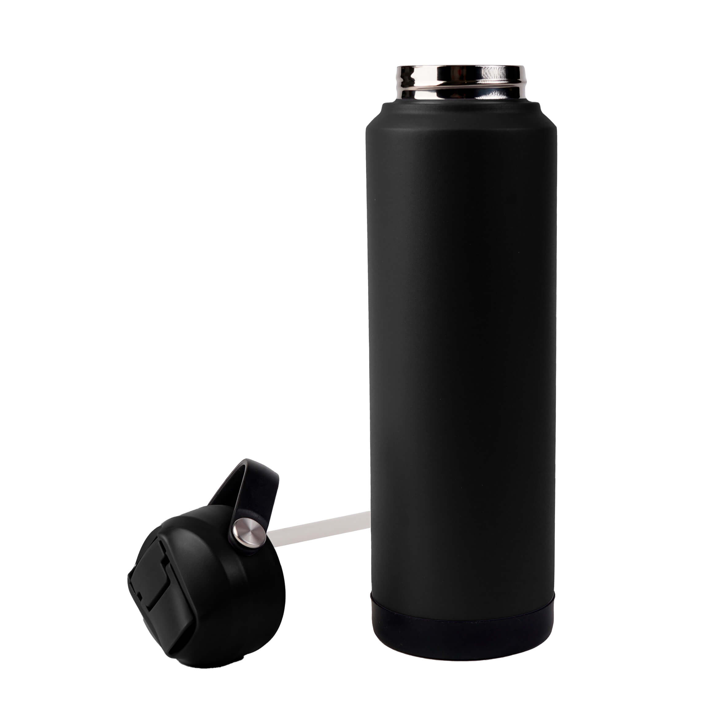 COBAN Termo con doble pared de acero inoxidable, insulado al vacío, acabado rugoso, su tapa enroscable cuenta con boquilla abatible, popote y asa en la parte superior.