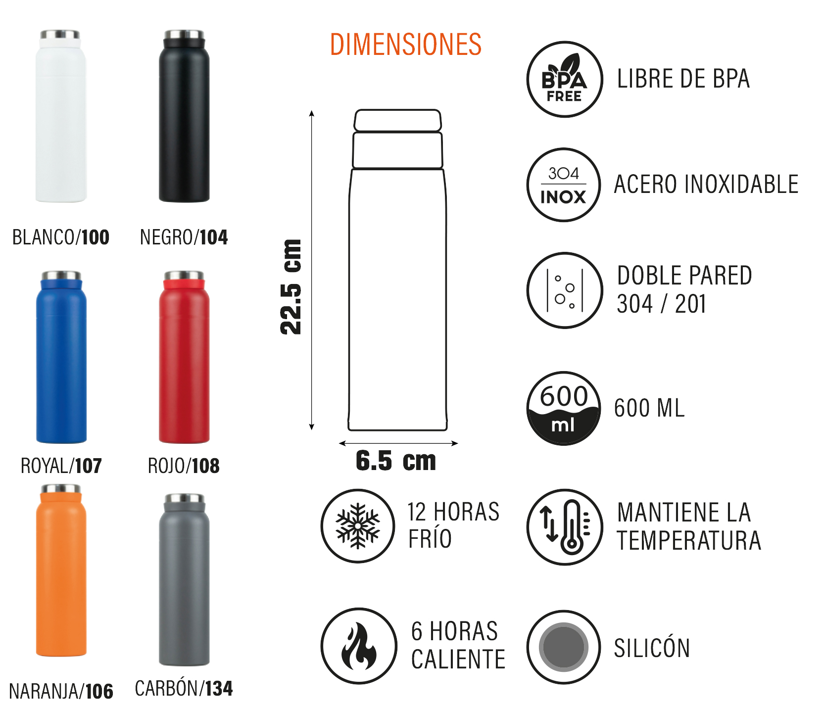 TERMO ARIZONA NEGRO 500 ML ACERO DOBLE PARED TAPA CROMO HERMETICA TAPARROSCA ANTIDERRAPANTE