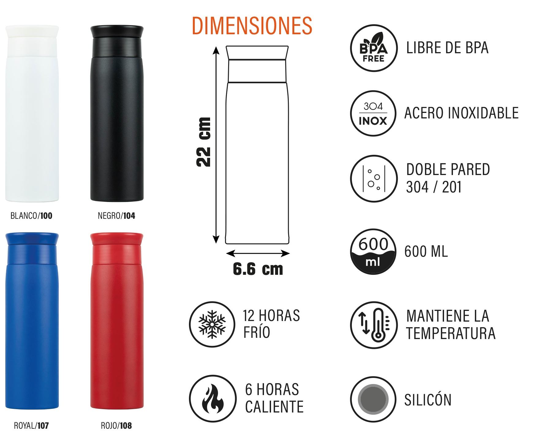 TERMO FLORIDA BLANCO 500ML ACERO DOBLE PARED STOP HIELO INTERMEDIO TAPA INDEPENDIENTE ANTIDERRAPANTE