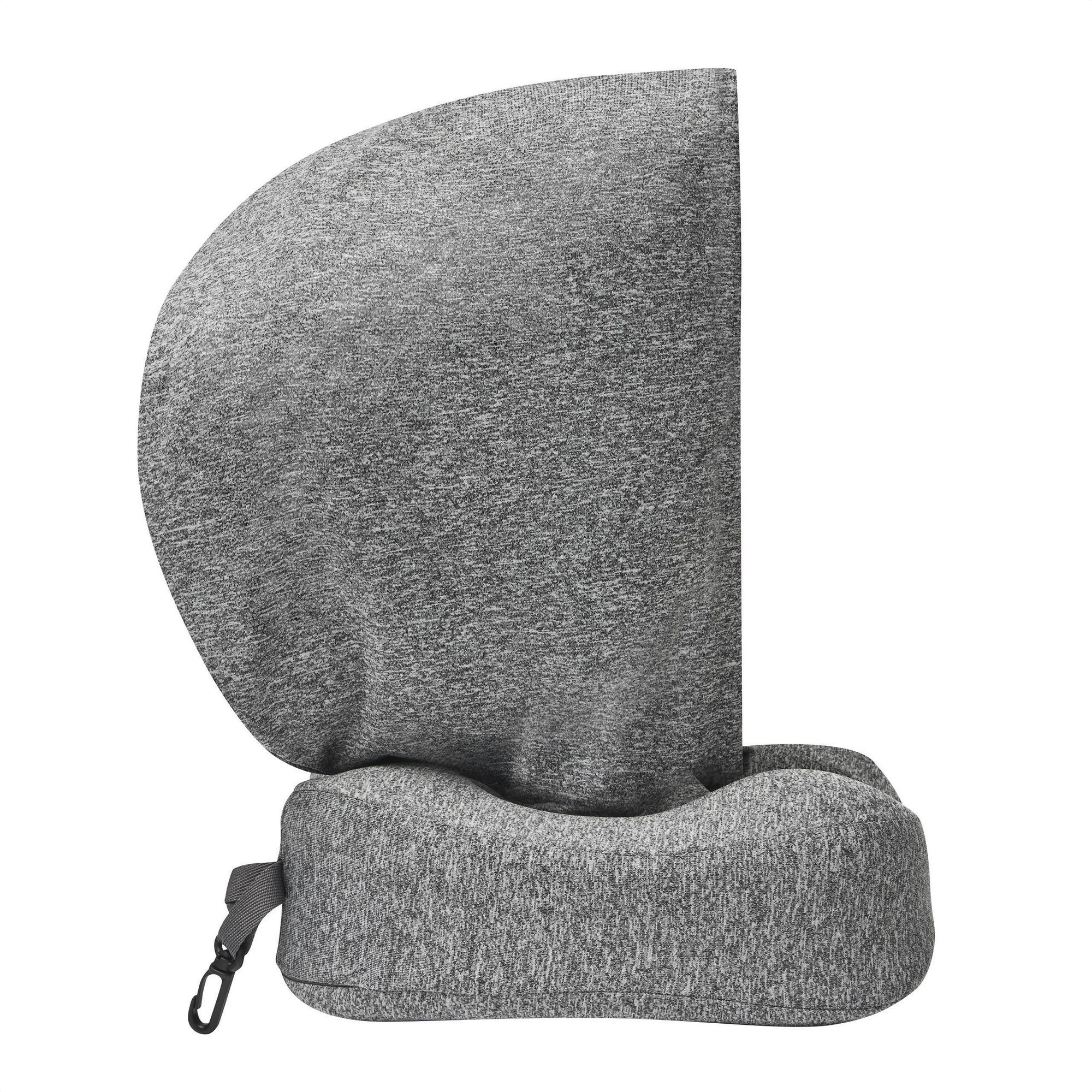 Almohada de viaje "REM" Almohada cervical. Funda extraible con cierre metálico y capucha incluida. Correas con cierre a presión y mosquetón plásticos para optimizar el guardado y traslado