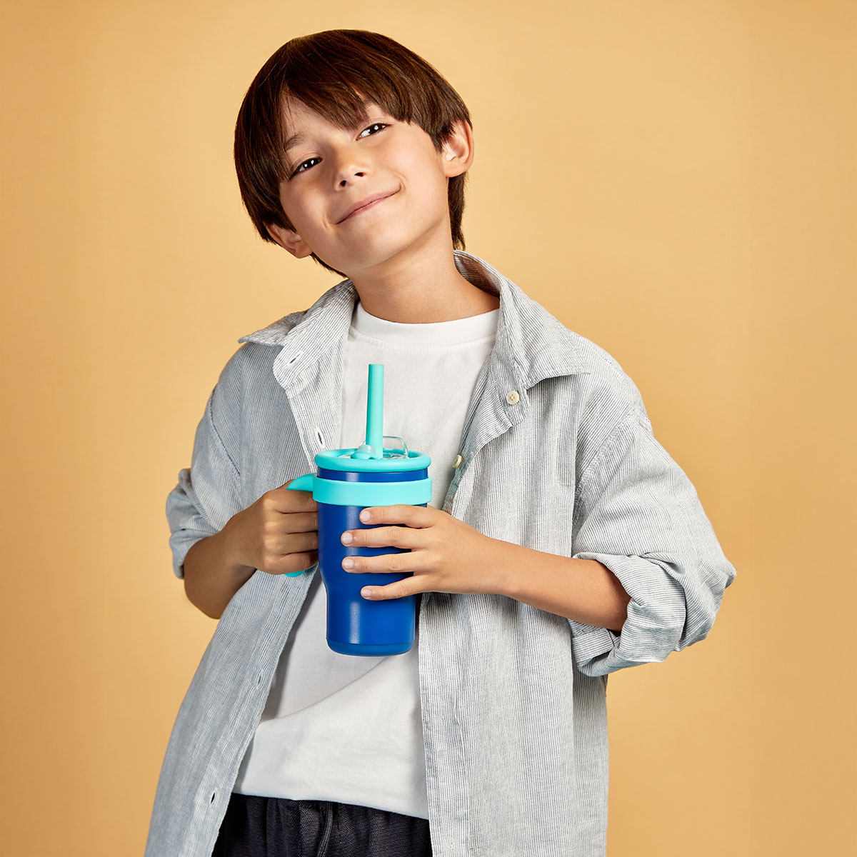 TERMO ANTALL - Termo doble pared. Cerrado al vacío. Pared interna y externa de acero inoxidable. Tapa de plástico con cierre de rosca que le aporta mayor seguridad. Cuenta con dos funcionalidades en la tapa, boquilla para beber con sobre tapa push y ranura para popote con sobre tapa adicional. Popote con boquilla de silicón, avanzado sistema de cierre anti derrames y asa de plástico. Su práctico tamaño, te permitirá transportarlo fácilmente a cualquier lugar. Ideal para niños y adultos. Mantiene temperatura caliente 6 hrs y fría 8 hrs. Capacidad de 15 Oz. Base de 6.5 cm de diámetro. Incluye cuerpo con terminado rugoso y caja individual.