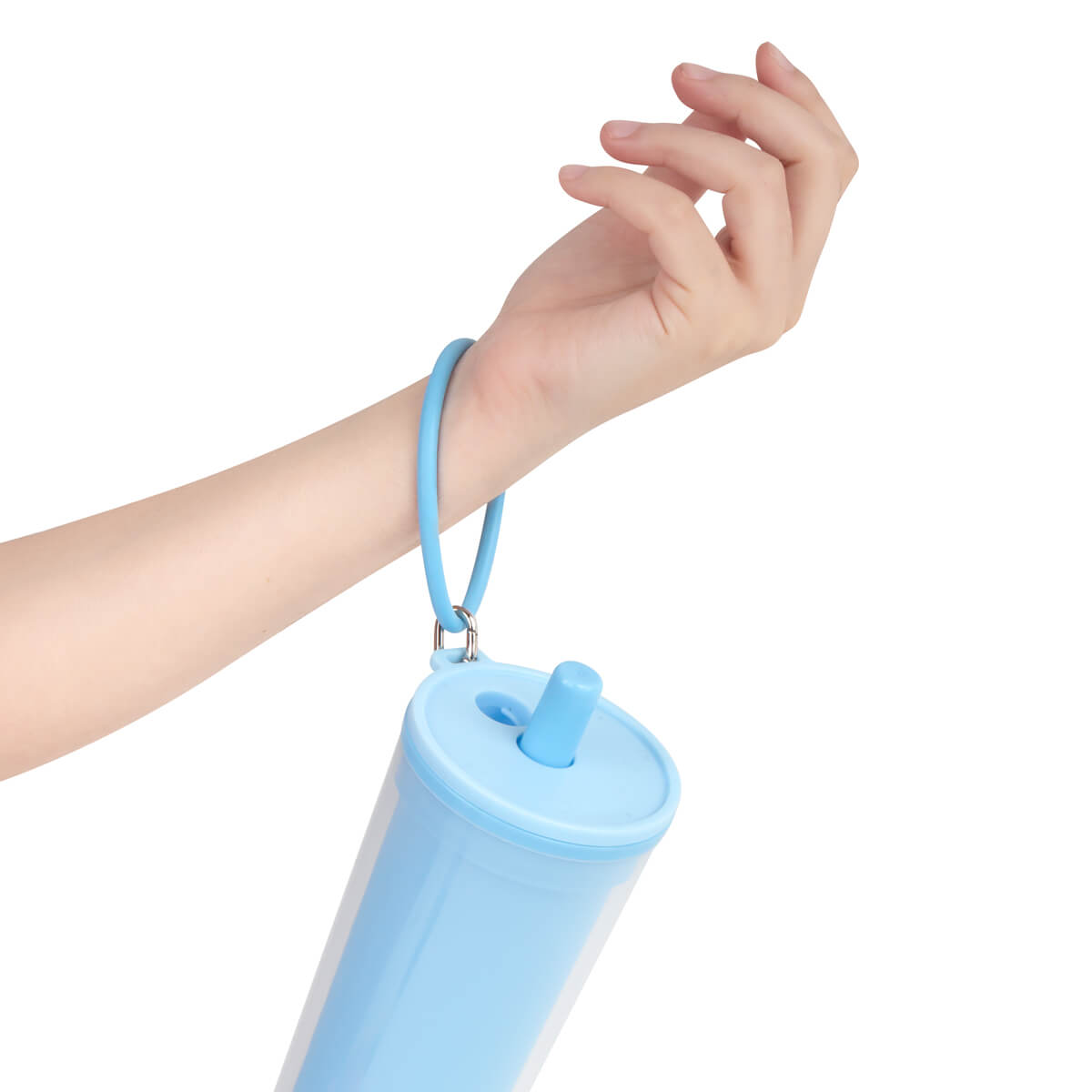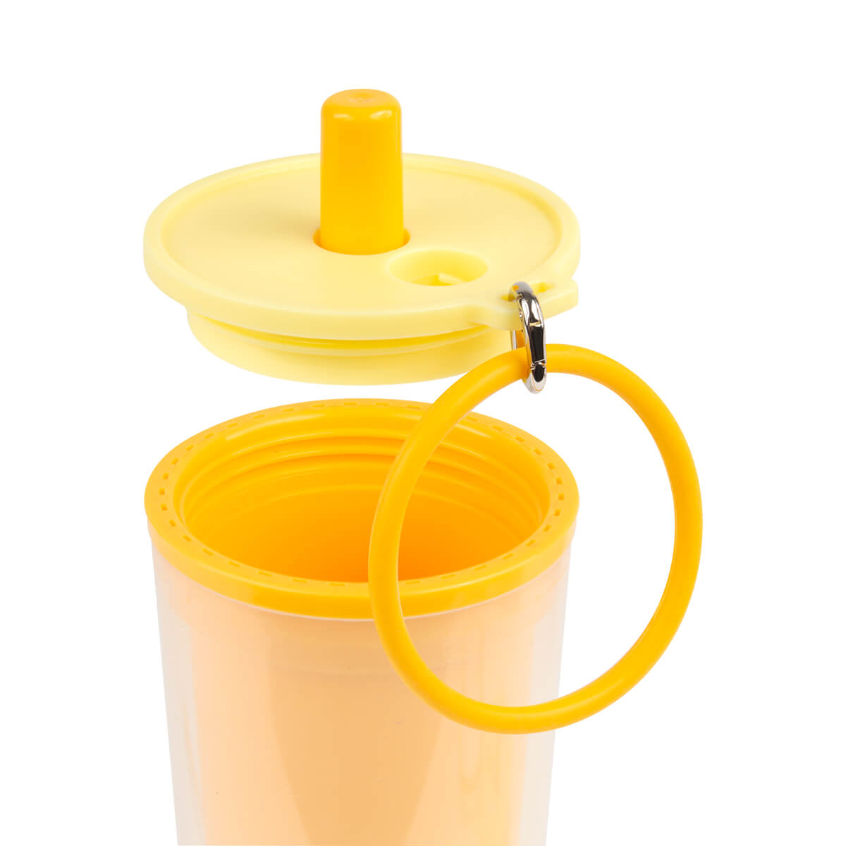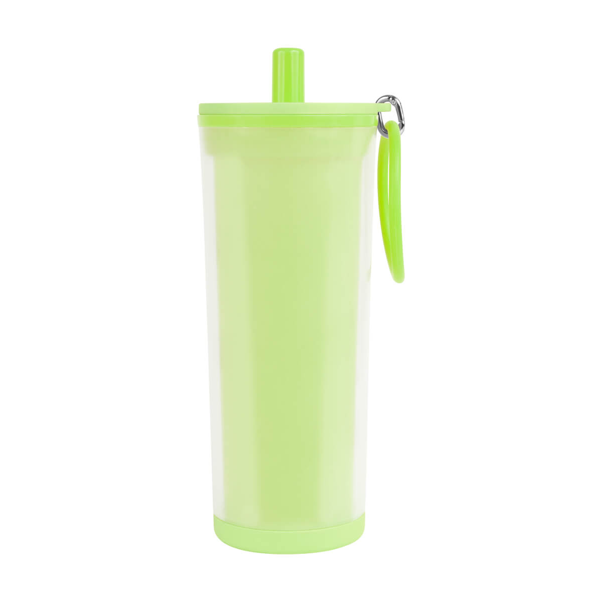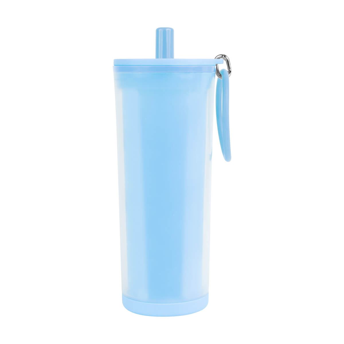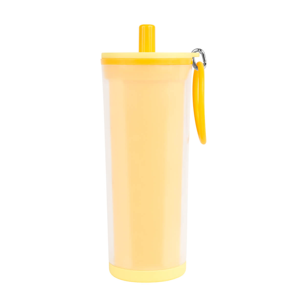 TERMO HUNZA - Vaso de plástico de doble pared. Pared interna de plástico a color y externa de plástico transparente. Tapa con cierre de rosca. Incluye popote y asa con forma de aro. Capacidad 16 Oz. Incluye caja individual.
