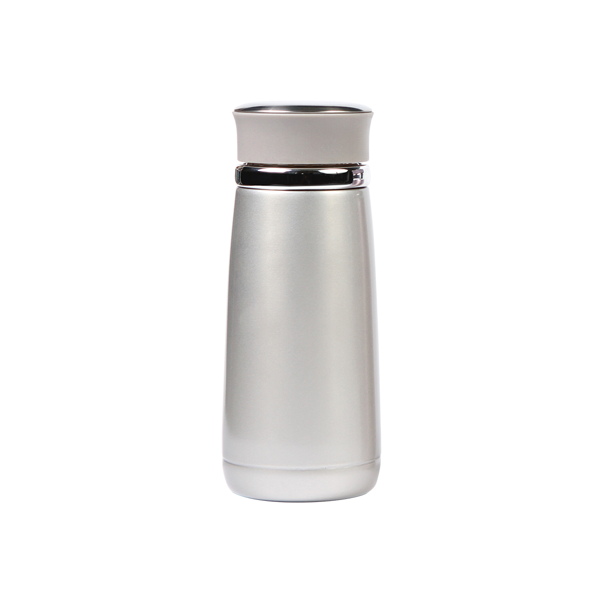 Termo Aosta. - Termo de acero inoxidable doble pared con acabado brillante y detalles metálicos, fabricado en materiales de grado alimenticio, mantiene bebidas frías o calientes por un largo tiempo, no usar en microondas. Capacidad de 420 ml (14 oz). Incluye caja de cartón individual.