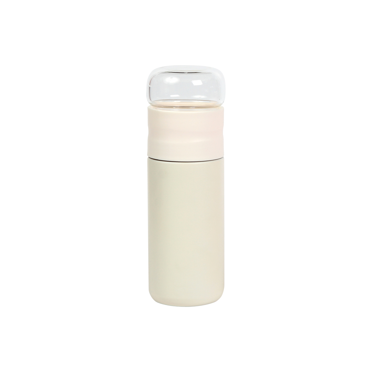 Termo Ransol. - Termo para infusiones de acero inoxidable doble pared, con taza de vidrio de borosilicato y rejilla coladora. Fabricado en materiales de grado alimenticio, mantiene bebidas frías o calientes por un largo tiempo. No usar en microondas. Capacidad de 320 ml. Incluye caja de cartón individual.