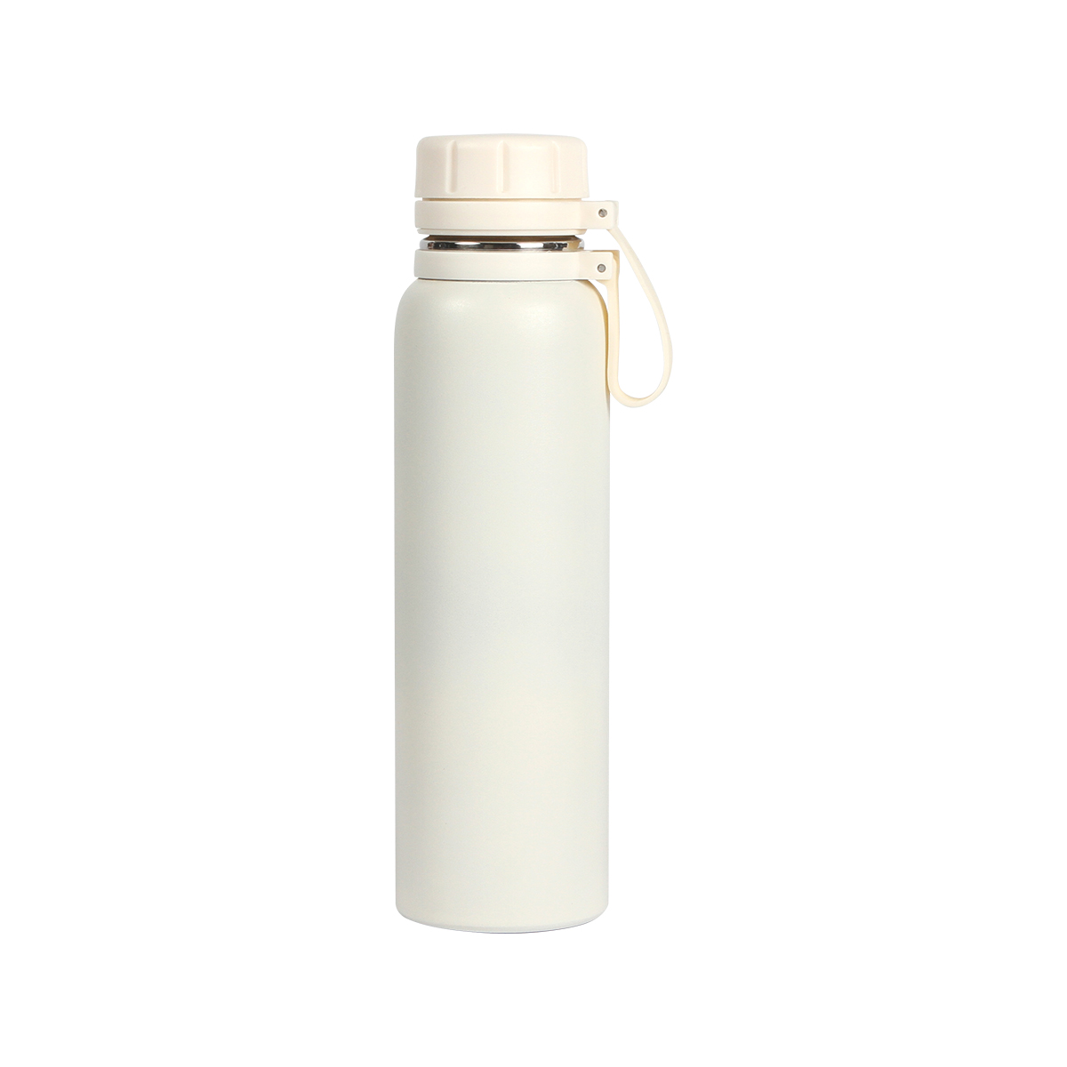Termo Rayán. - Termo de acero inoxidable doble pared acabado brillante, con tapa de plástico y correa de silicón. Fabricado en materiales de grado alimenticio, mantiene bebidas frías o calientes por un largo tiempo. No usar en microondas. Capacidad de 850 ml. Incluye caja de cartón individual.