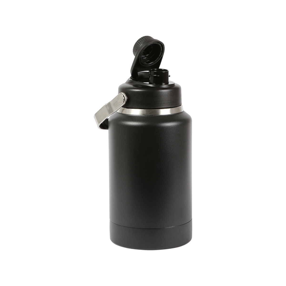 Cilindro Lungern. - Cilindro doble pared fabricado en acero inoxidable 604, tapa de seguridad de rosca con boquilla. Capacidad de 1,800 ml. Incluye caja de color individual y asa metálica para transportar, peso 1,150 g.