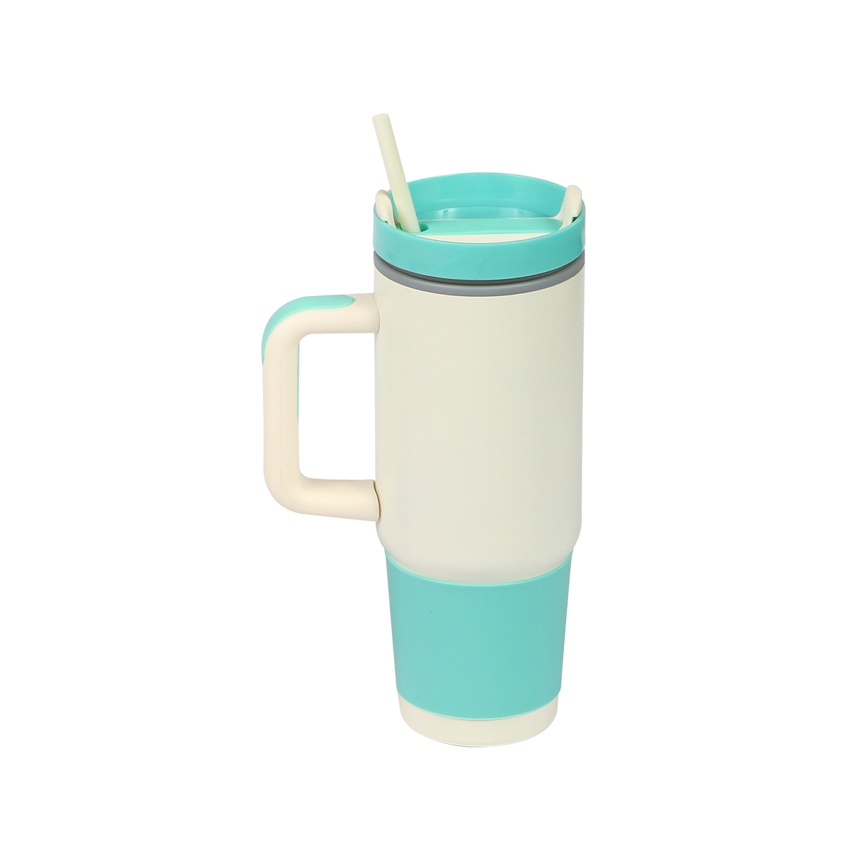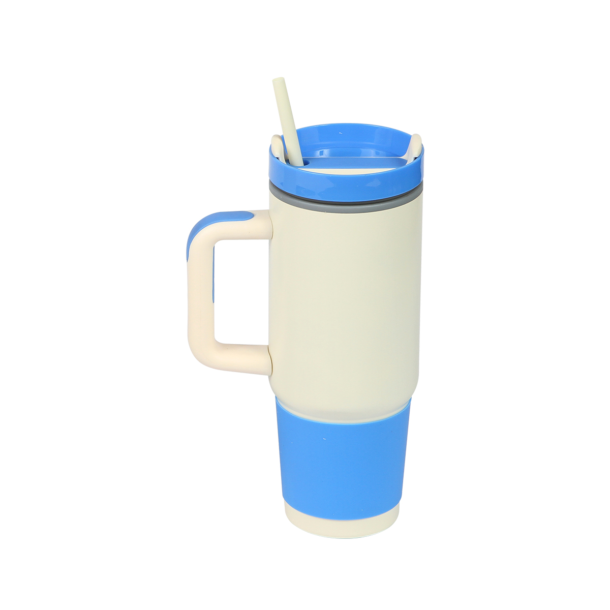 Termo Spitz. - Termo de doble pared fabricado en polipropileno capacidad de 900 ml o 30 onzas. Con detalles en colores pastel, tapa de rosca en color con entrada hermética para popote y compartimento con boquilla, es perfecto para llevar a donde vayas.
