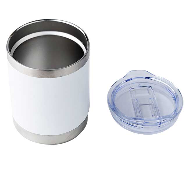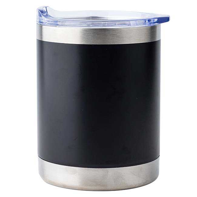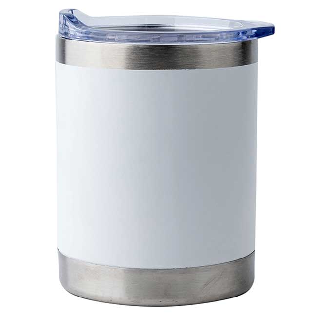 Tarro Encino Capacidad: 350 ml. Sistema de doble pared al vacío. Tapa de plástico con cierre deslizable. Colores: Blanco y Negro.