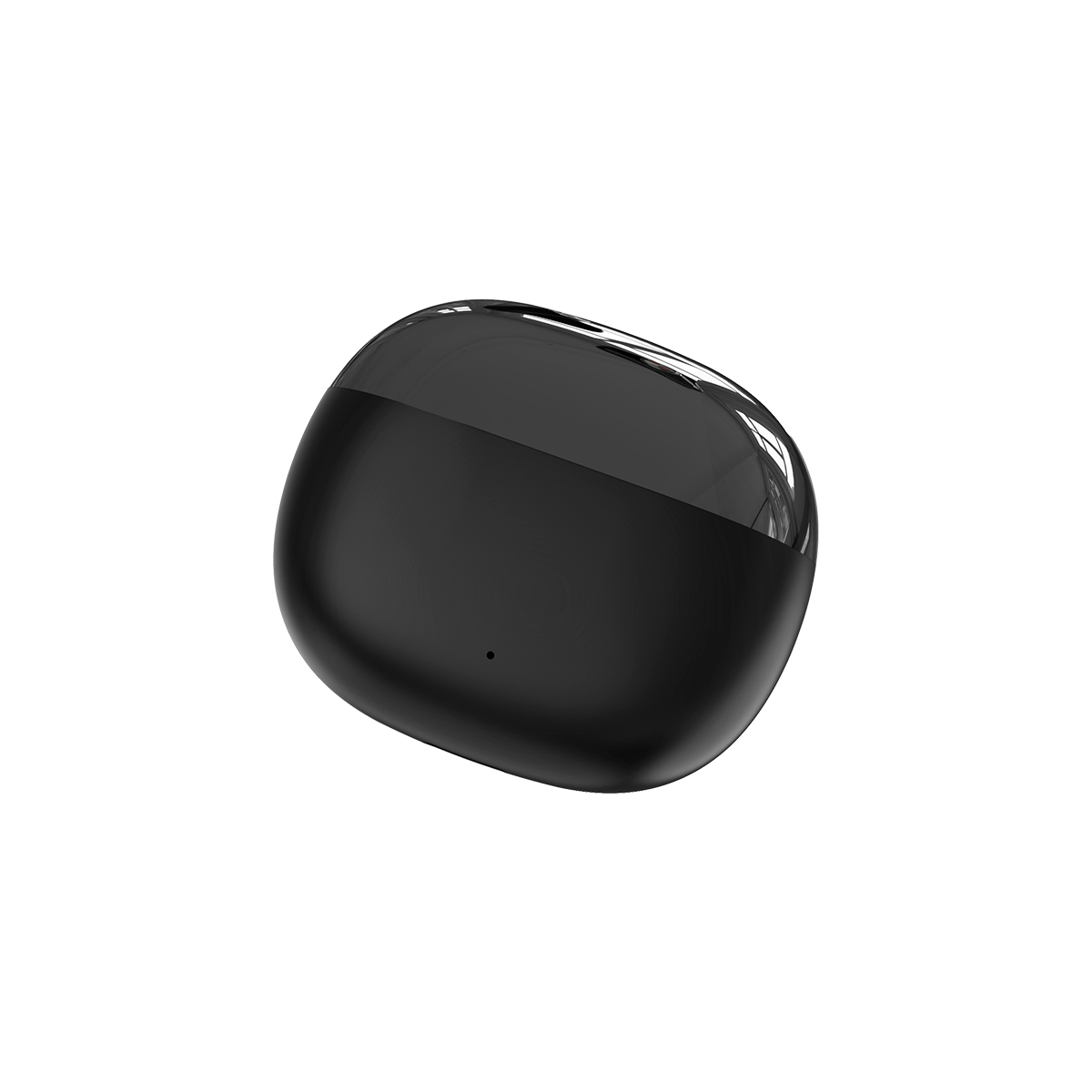 Audífonos Velletri. - Audífonos con conexión de sonido sin cables bi-tono, en la parte superior con acabado brilloso, y parte inferior con acabado mate, con estuche de carga ovalado, los audífonos tienen un ligero detalle en color plateado en la parte inferior. Incluye cable de carga USB y caja de cartón individual.